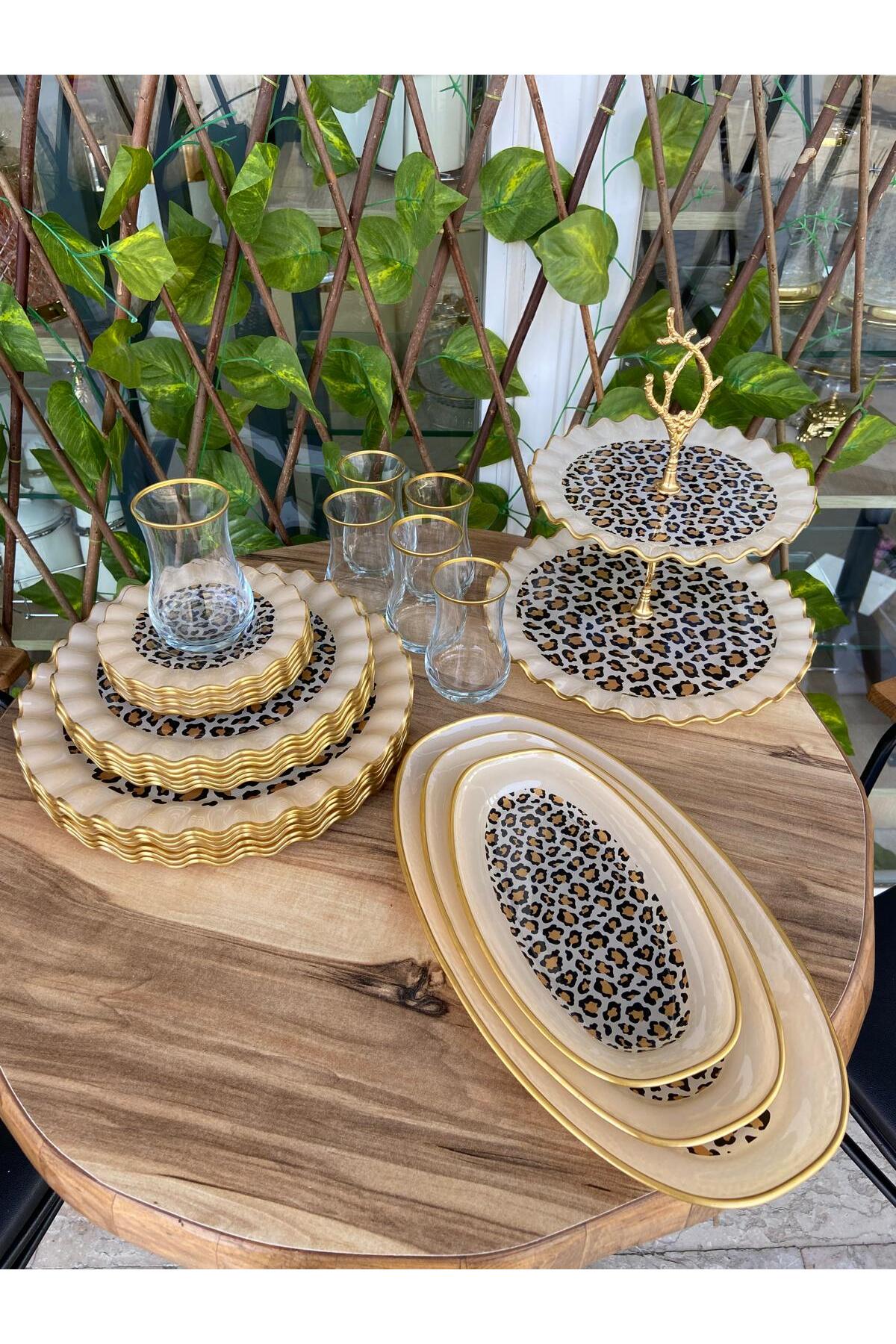- Leopar deseniyle modern ve şık bir görünüm sunan bu set, yemeklerinizi daha da çekici hale getiriyor.