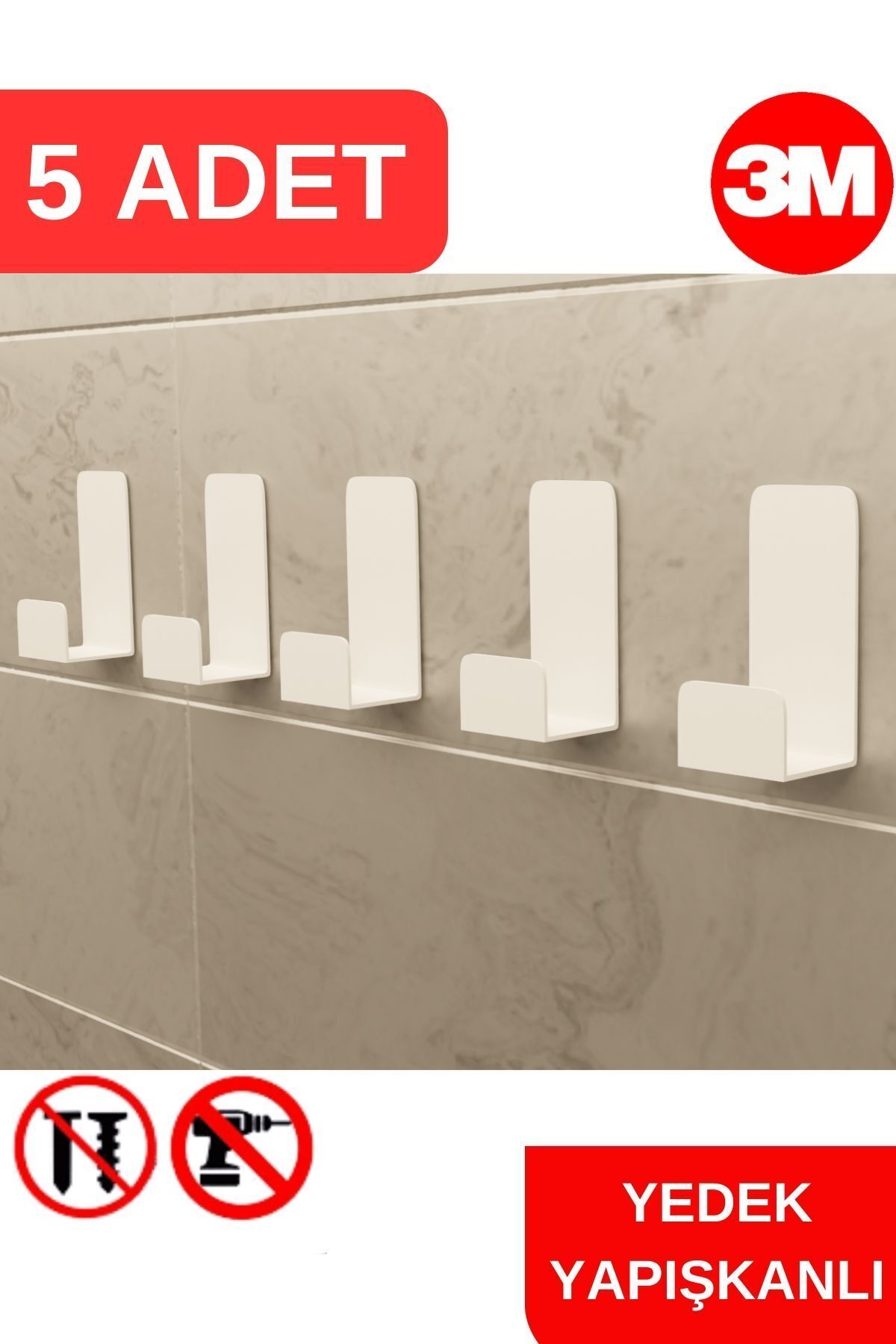 Risingmaber Beyaz 5li Yapışkanlı Askılık, pratik ve şık tasarımıyla ev ve işyerlerinizde düzenli bir ortam sağlamak için mükemmel bir çözümdür.