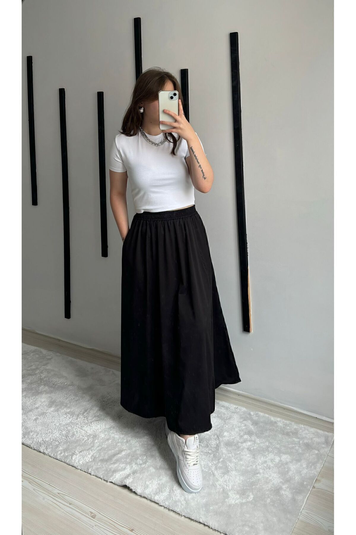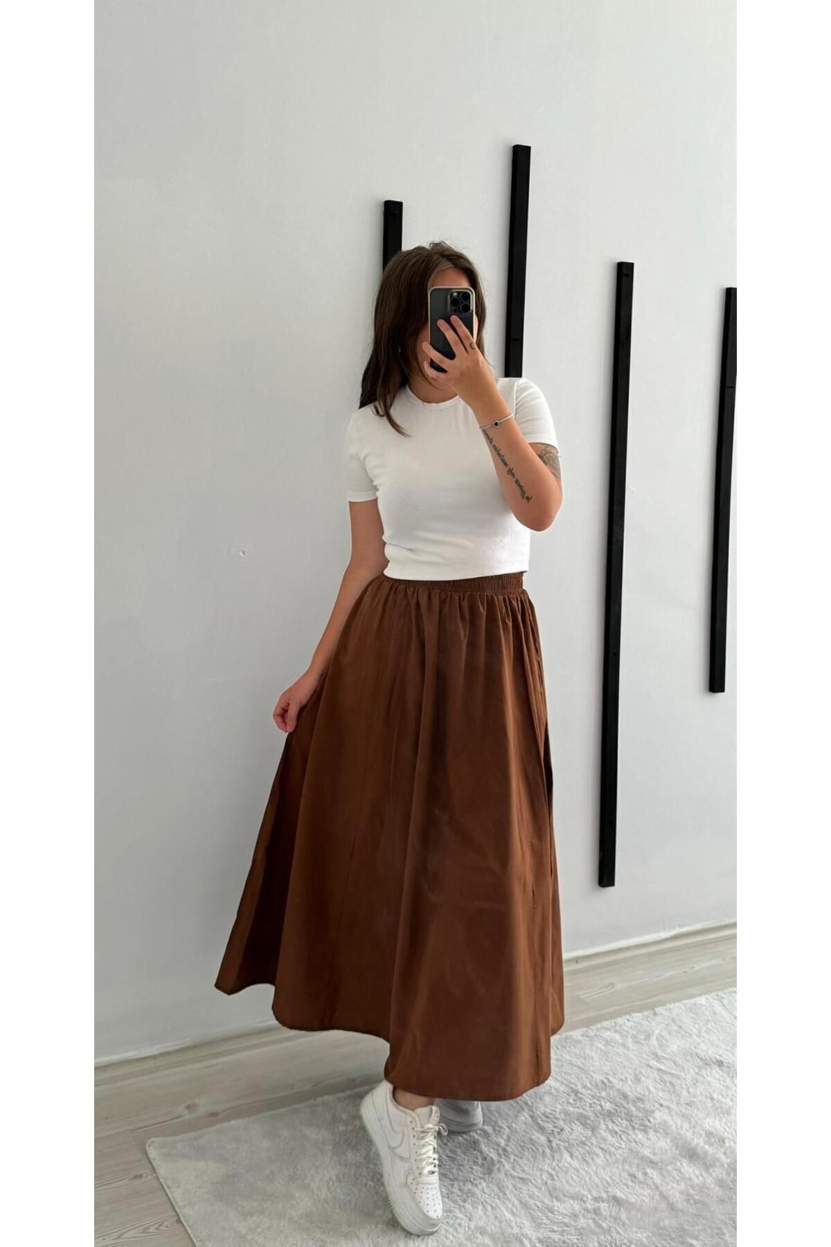 Fileto Cepli Poplin Kumaş Uzun Etek Astarsız (90CM)