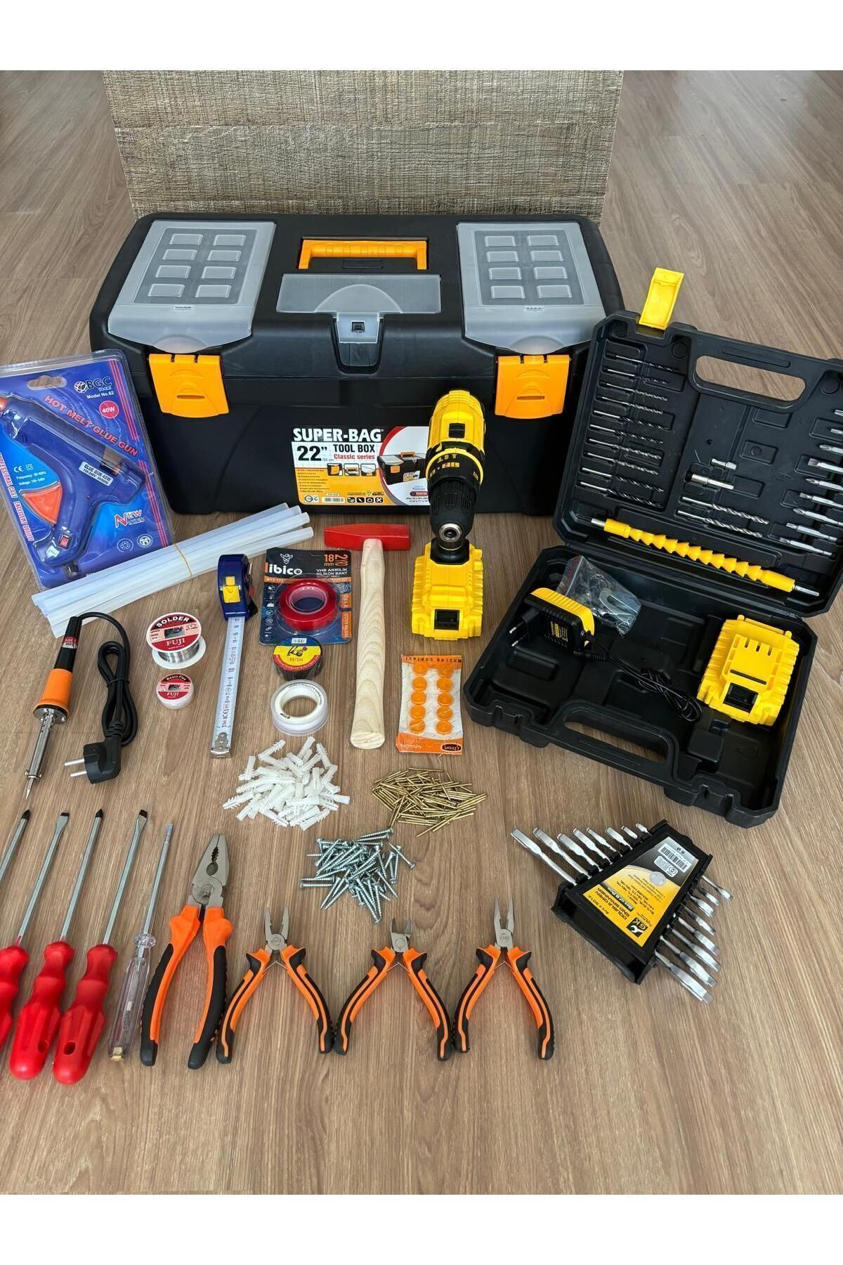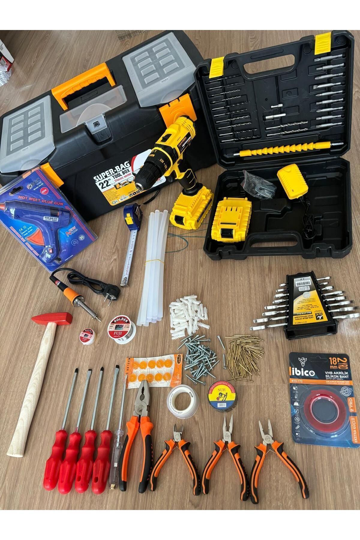 100 Adet 2x30 Çivi 50 Adet 6 mm Plastik Dübel 50 Adet 4x30 mm Vida 1 Adet Pense 2 Adet Yıldız Tornavida 2 Adet Düz Tornavida 1 Adet Kontrol Kalemi 1 adet Yan Keski Mini Boy 1 adet Karga Burnu Mini Boy 1 adet Pense Mini Boy Minik Takı Hobi Elektronikçi El Aletleri Takı Tamiri 1 Adet İzole Elektrikçi Bandı 1 adet çift taraflı bant 1 adet teflon tamır bantı 10 adet musluk contası 1 adet 300 grm çekiç ağaç saplı 1 adet lehim makinası 1 adet lehim teli 1 adet lehim pastası 1 adet slikon makinası 10 adet sıçak silikon 1 adet şerit metre GÖRSELDE GÖRDÜNÜZ ÜRÜNLERİN HEPSİ GÖNDERİLİYOR