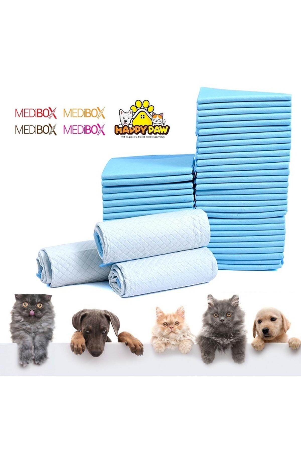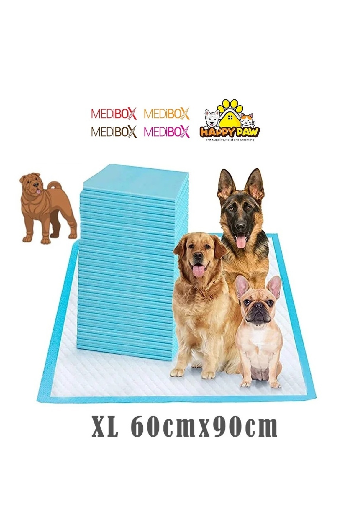 60cm x 90cm boyutlarındaki Medıbox çiş pedi, geniş kullanım alanı sunarak köpeklerinizi rahatça tuvalet ihtiyaçlarını gidermelerine olanak tanır