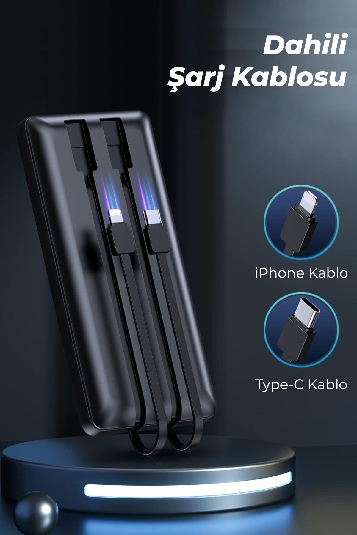 Dahili Lightning ve Type-C kablolar sayesinde hem iPhonetelefonlarınızı hem de Type-C girişli Android telefonlarınızı ek kablotaşımanıza gerek kalmadan her yerde şarj edebilirsiniz. iPhone serileri, Type-Cgirişli Android telefonlar, tabletler veya elektronik cihazlarla uyumludur.