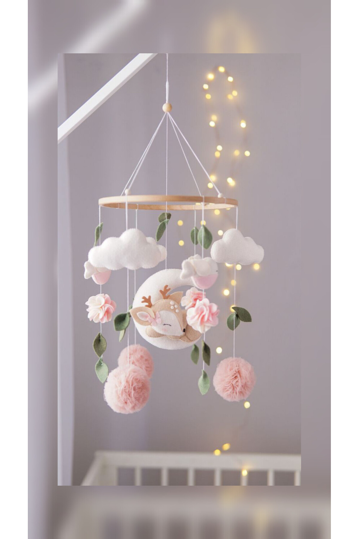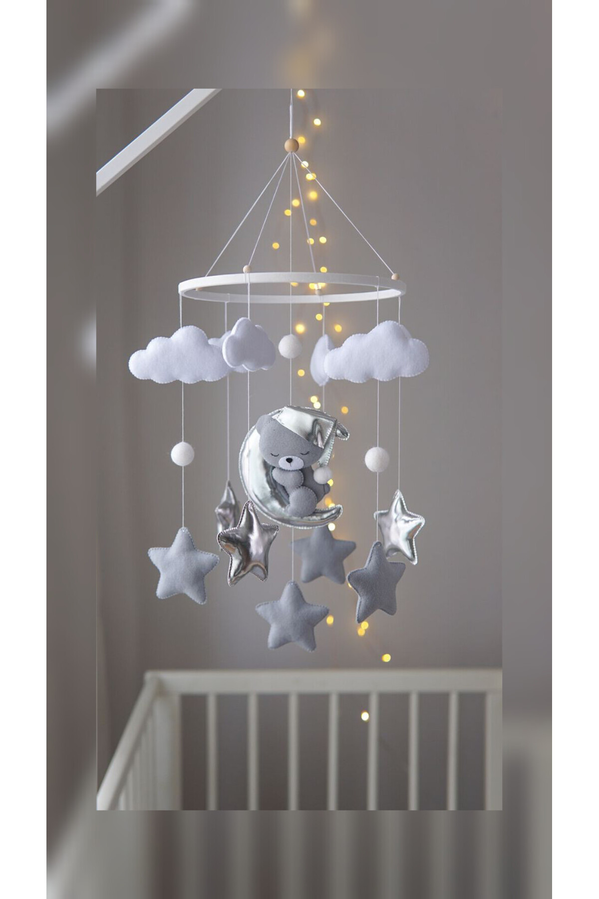 El yapımı keçe malzemesiyle hem dayanıklı hem de estetik bir görünüm sunar, bebek odası dekorasyonuna sıcak bir dokunuş katar