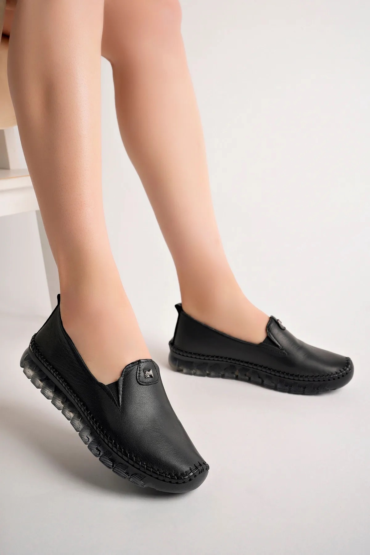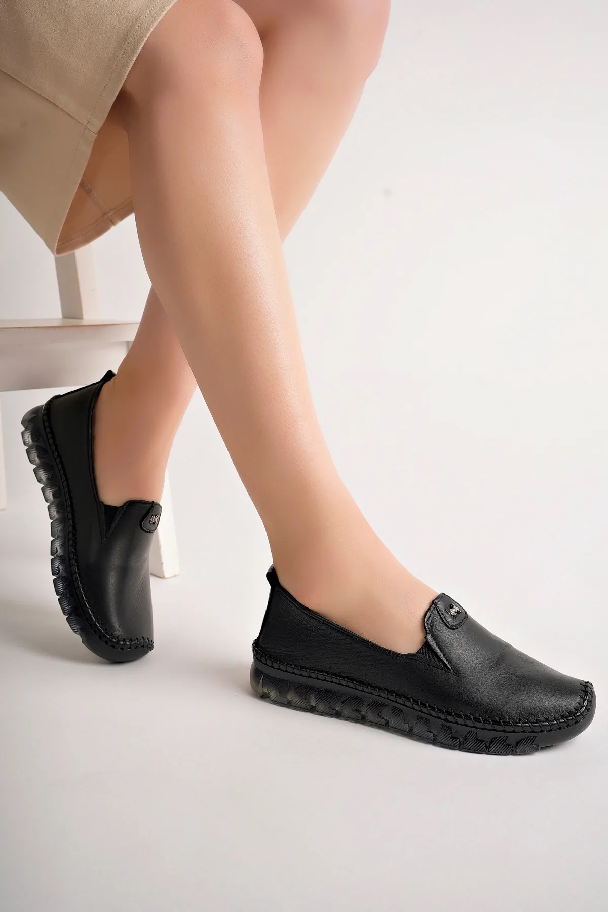 Dışı ve içi hakiki deri,mostra pedli hakiki deri,şeffaf jel anatomik taban,taban yüksekliği 2.5 cm,Türkiye'de üretilmiştir.