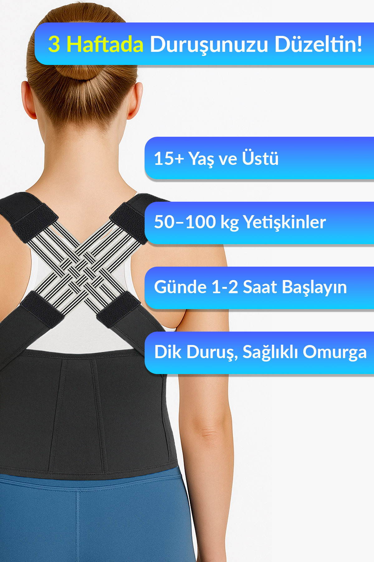 KALICI DURUŞ ALIŞKANLIĞI: Düzenli kullanımda vücudunuz dik durmayı öğrenir Dik durma korsesi olmadan da dik durmaya başlarsınız.