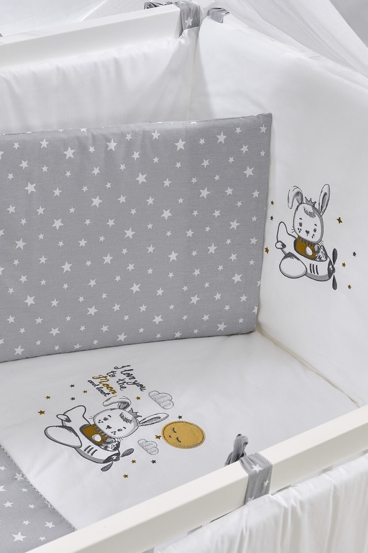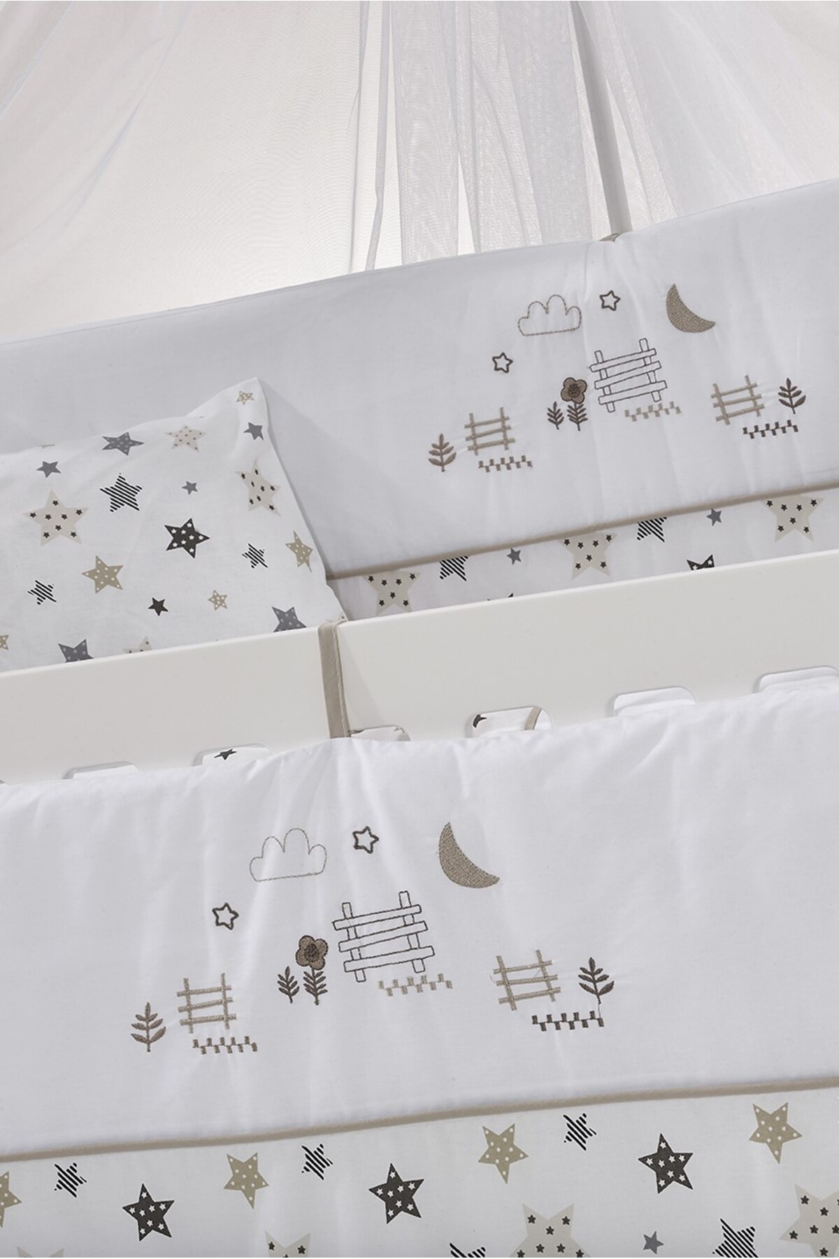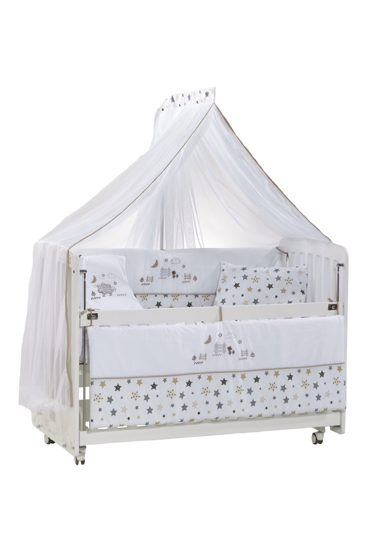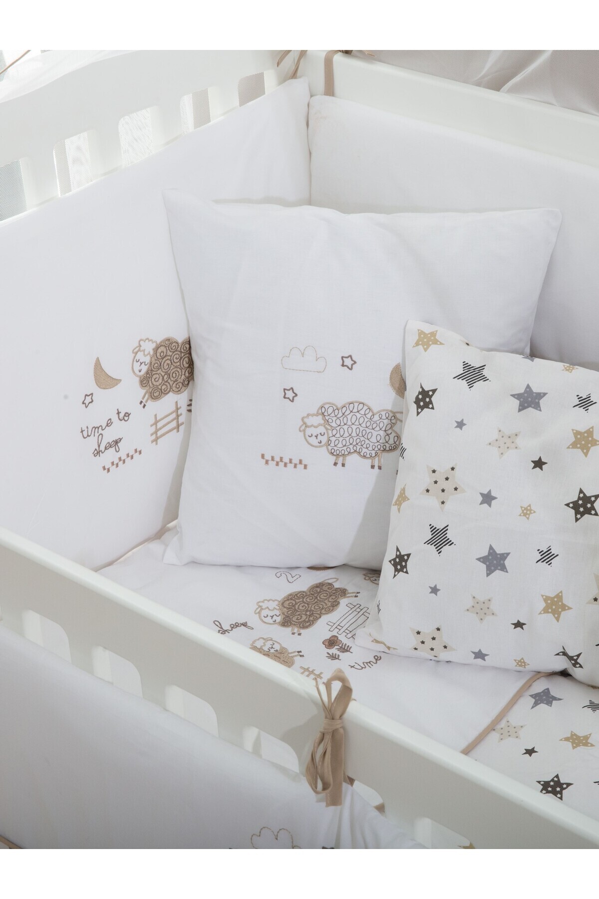 Kuzu Nakışlı Uyku Seti 60*120 cm Beşikler İçin Pamuklu Bebek Uyku Seti Sadece UYKU SETİ ve CİBİNLİK SETİ gönderilecektir! 60*120 cm ölçülerinde tüm beşikler için uygundur * Set içeriği 9 parçadan oluşmaktadır: 1 adet yorgan, 1 adet çarşaf, 1 adet yastık, 1 adet nakışlı kırlent kılıfı, 1 adet fermuarlı kısa kenar koruma, 2 adet fermuarlı uzun kenar koruma, 1 adet cibinlik, 1 adet cibinlik aparatı *Oeko