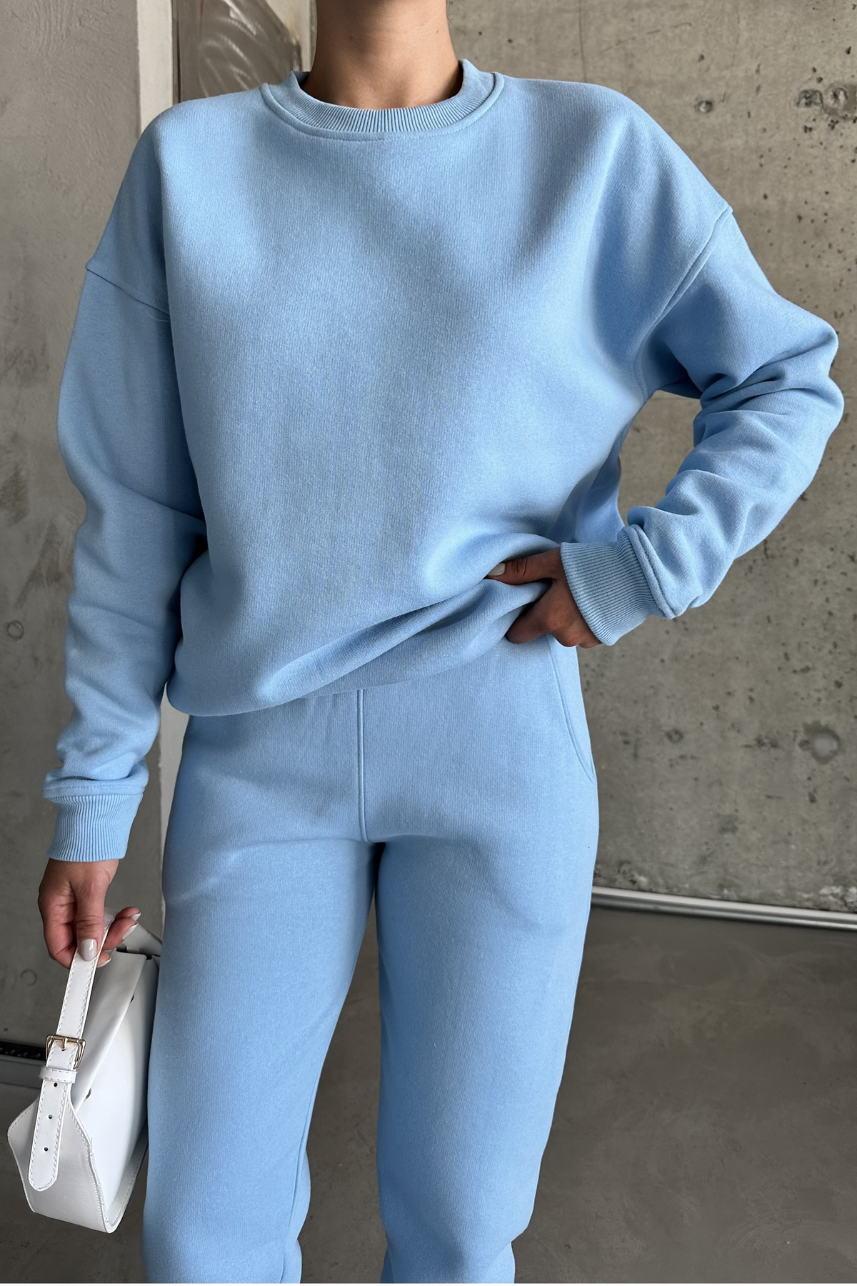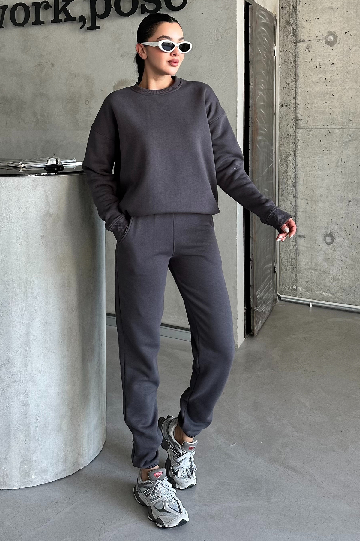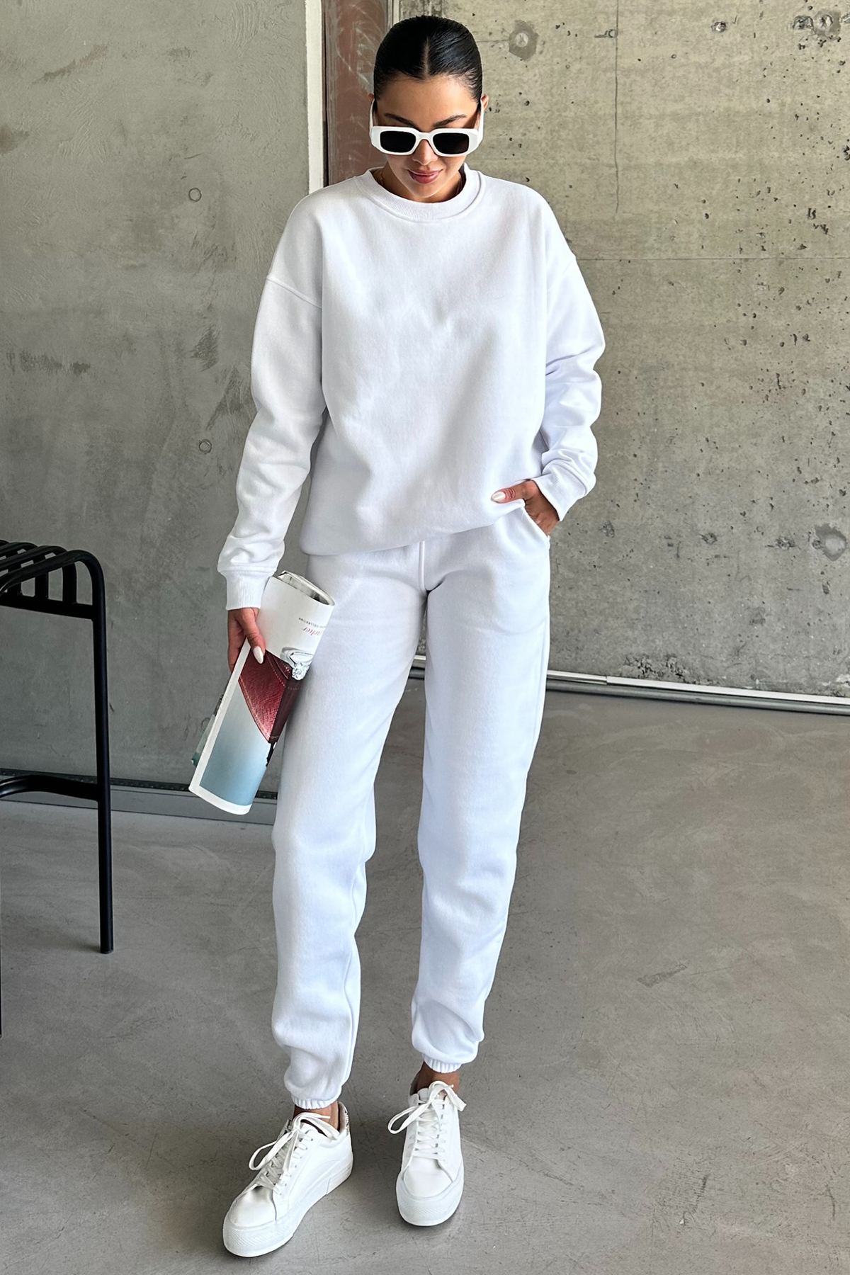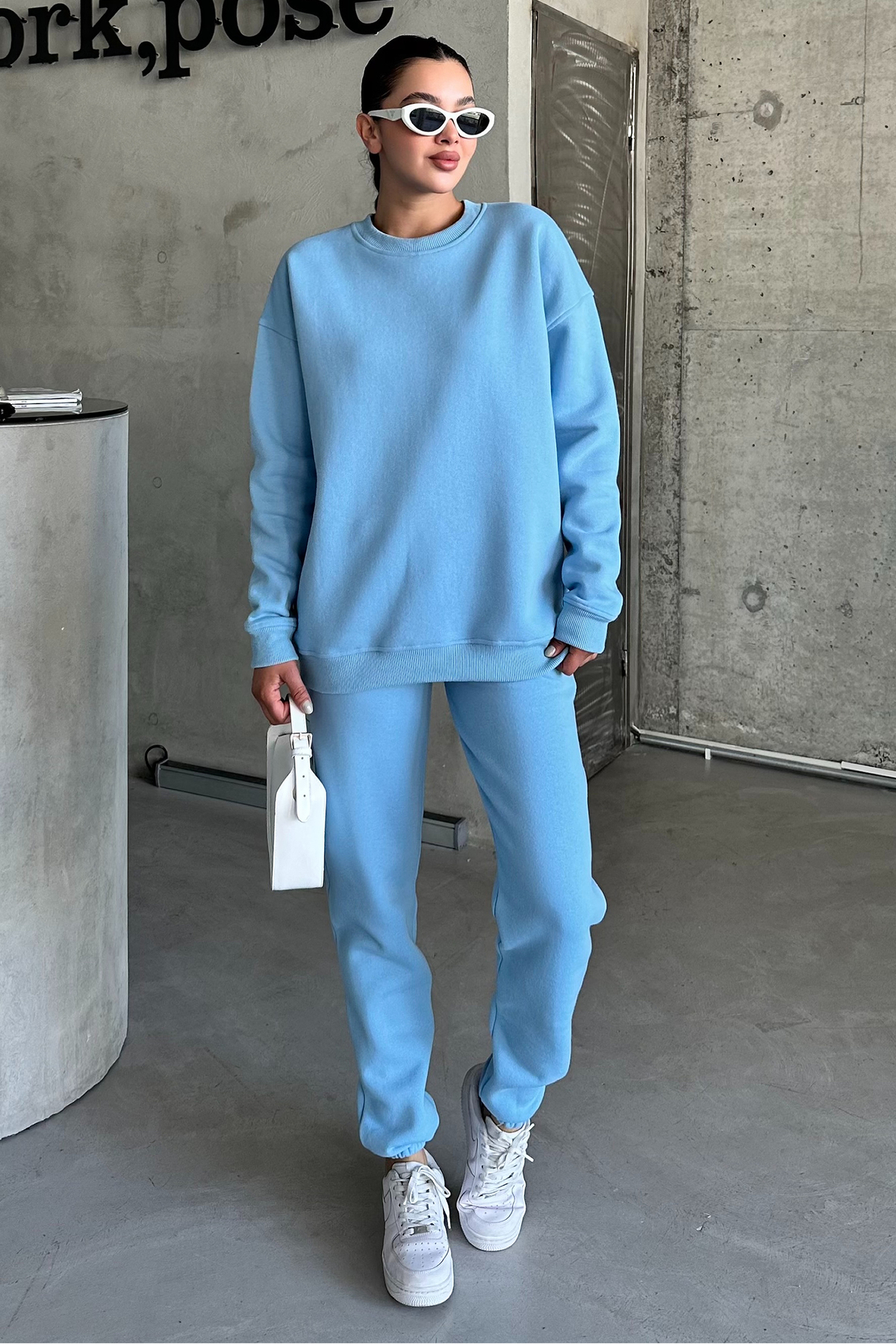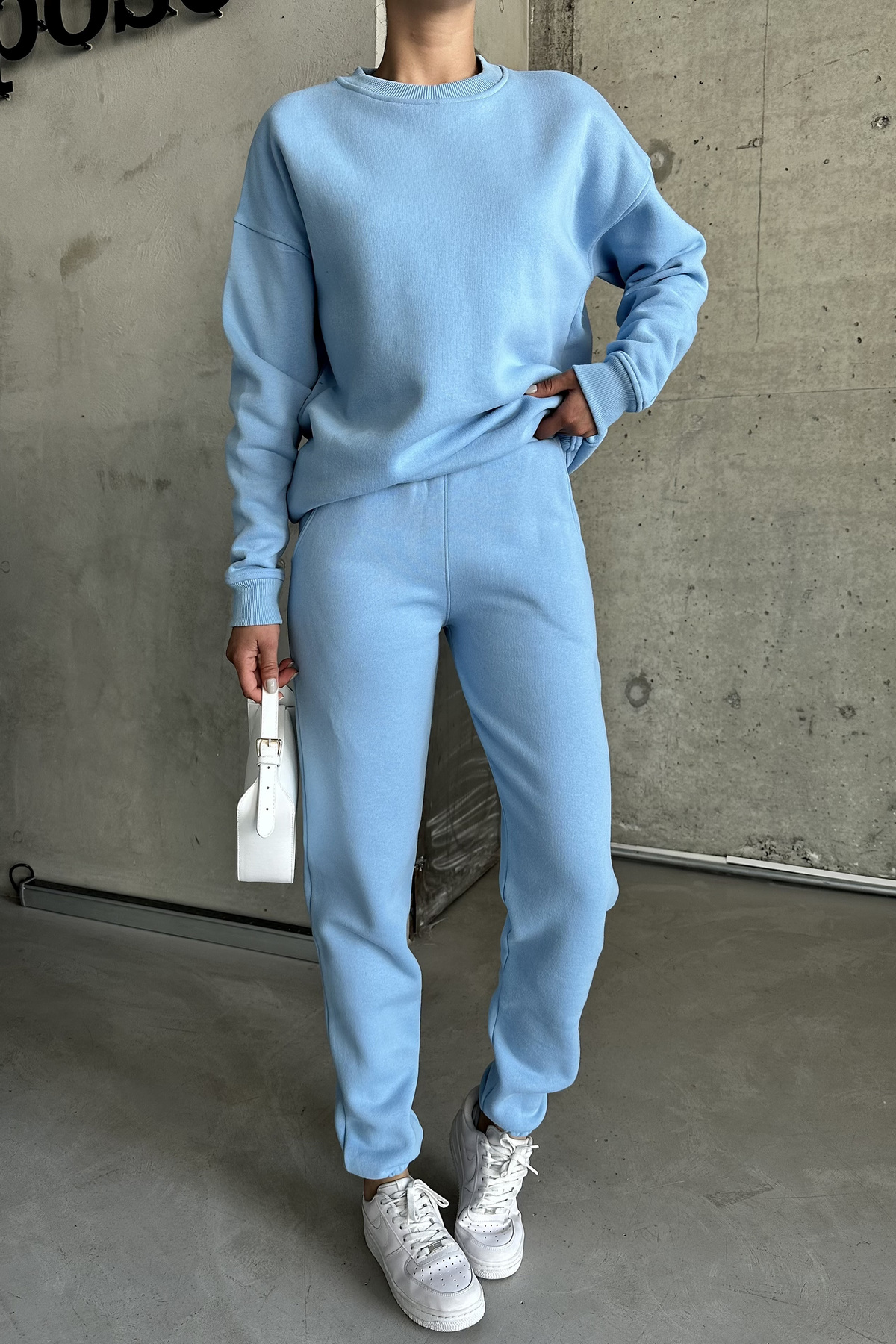 Uzun kollu sweatshirt ve eşofman altı ile mevsim geçişlerinde ideal sıcaklık dengesi sunar