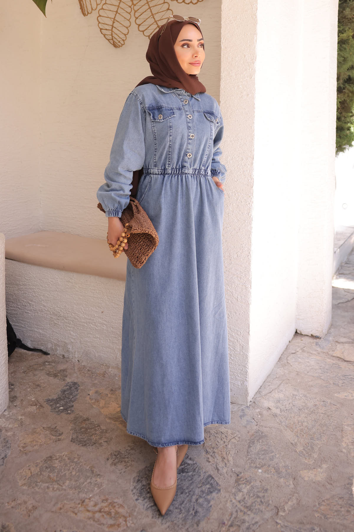 * Ürün Kalıp : Dar Kalıp ( Kendi bedeninizden bir beden büyük tercih etmeniz önerilmektedir. ) * Kumaş Türü : Yeni Sezona Uygun Kot Kumaş * Ürün Boy : 130 cm * Astar : Yok * Fermuar : Yok * Esneklik : Yok * Ürün Detay :Yeni Sezona Uygun Kot Kumaştan üretilmiştir. Gömlek yaka bel büzgülü kot elbisemiz ile tek parçanın zarafetini yakalama zamanı ! * Manken Ölçüleri : Boy 1.65 Kilo:50 * Mankenin Giydiği Numune Beden : 38 * Numune Bedenin Ürün Ölçüleri : 38 Beden için ürün ölçüsü
