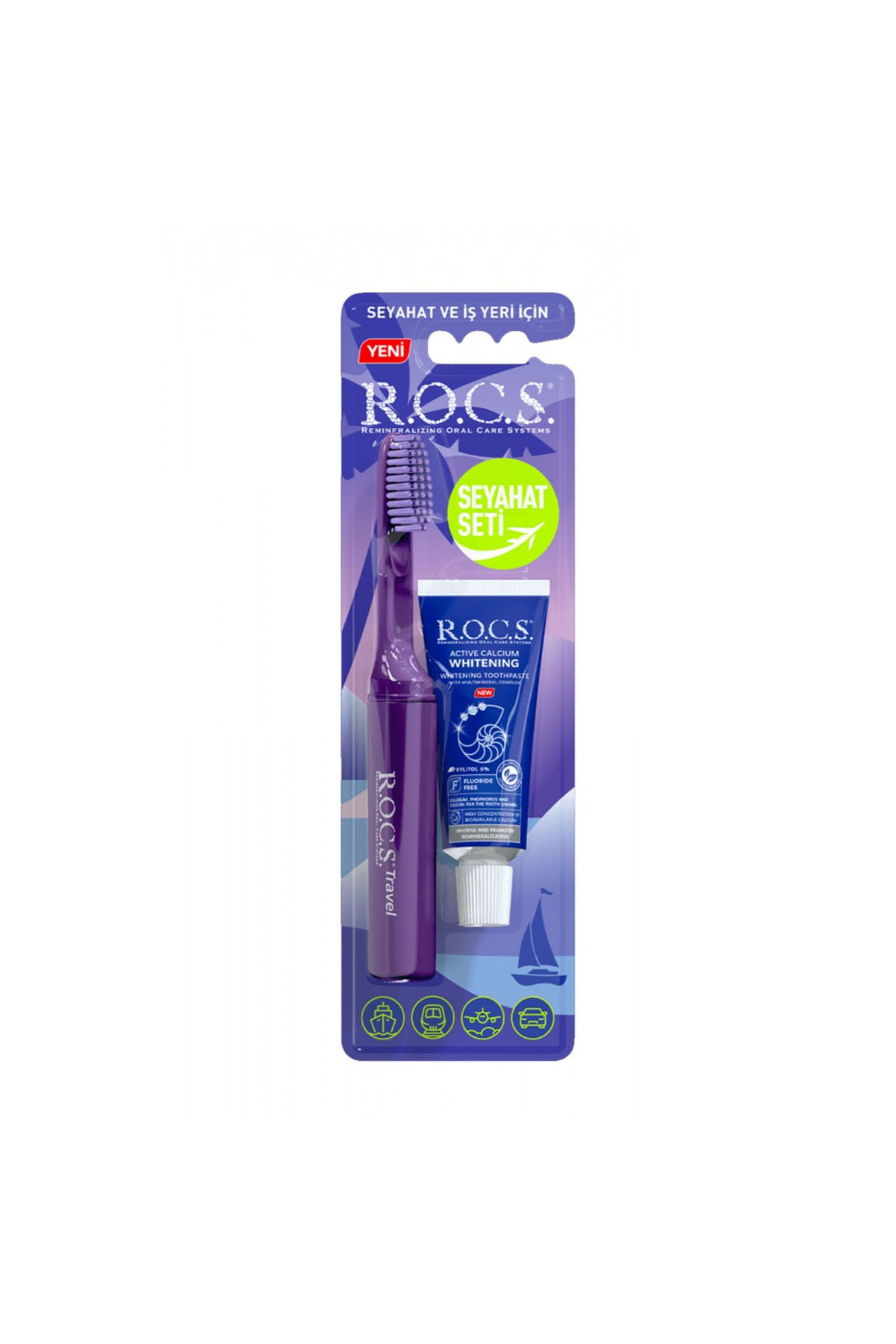 Rocs Travel Seyahat Seti Fırça ve 25Gr Diş Macunu Rocs Travel Seyahat Seti Fırça Rocs Travel Kit, genellikle seyahatlerde veya taşınabilirlik gerektiren durumlarda pratik bir şekilde kullanılabilecek bir diş bakım setidir.