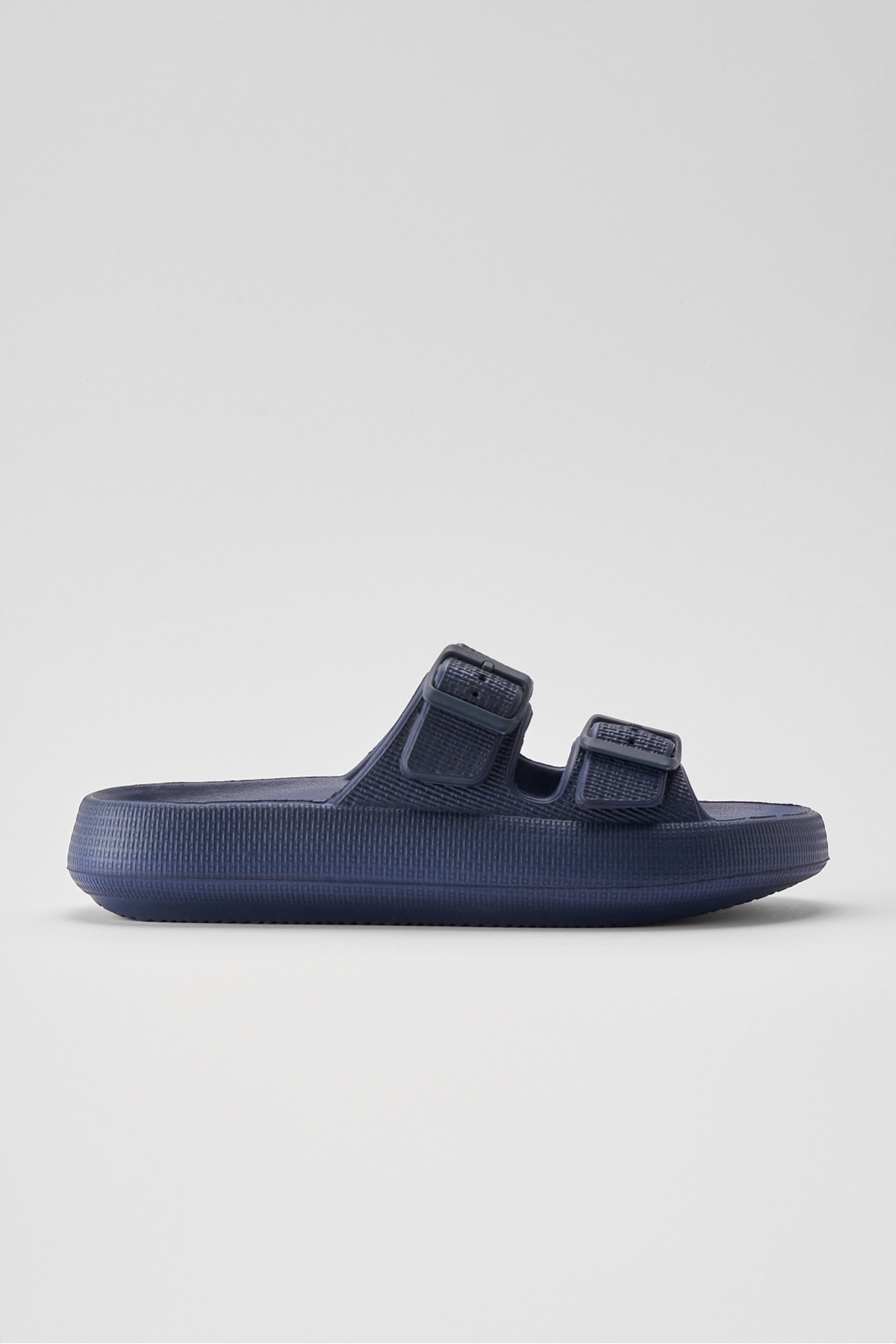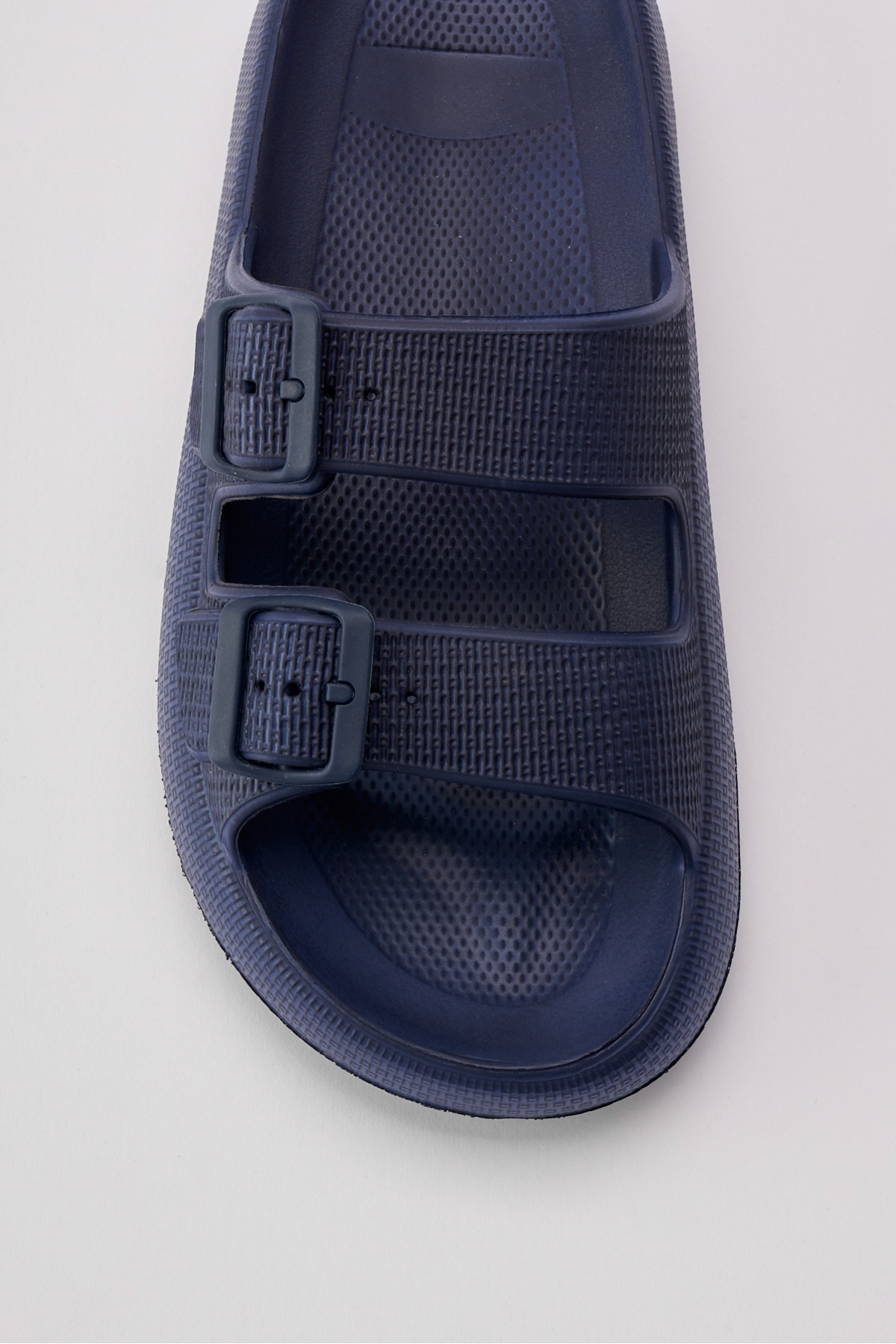 Sade ve şık tasarımıyla her kıyafetle uyum sağlayan düz desenli lacivert terlik