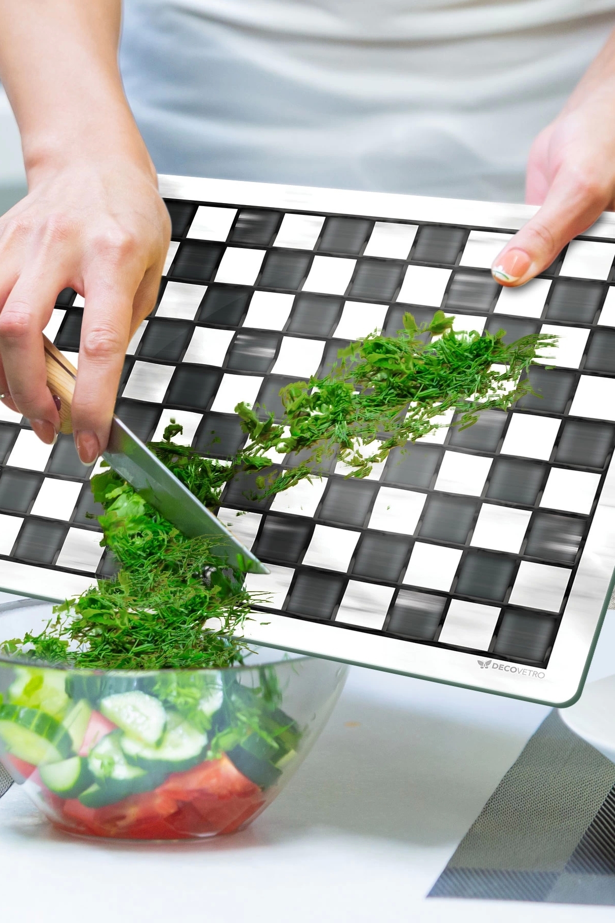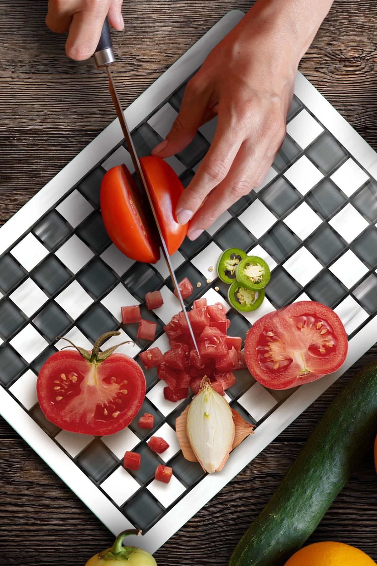 Fonksiyonel Kullanım: Yüksek kaliteli cam malzeme, kesme işlemi sırasında yiyeceklerinizi temiz bir yüzeyde hazırlamanıza yardımcı olur.