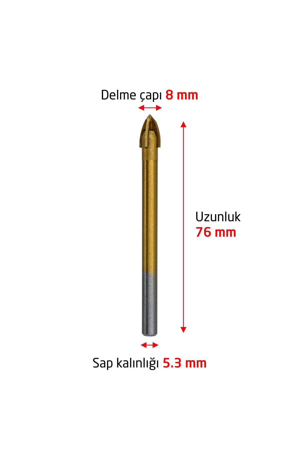 6174 Ok Tipi 4 Elmaslı Cam Fayans Delme Matkap Ucu 8 mm Seramik, fayans, cam ve ayna delmede kullanılır, cam ve fayanslarda delik açmak için idealdir.
