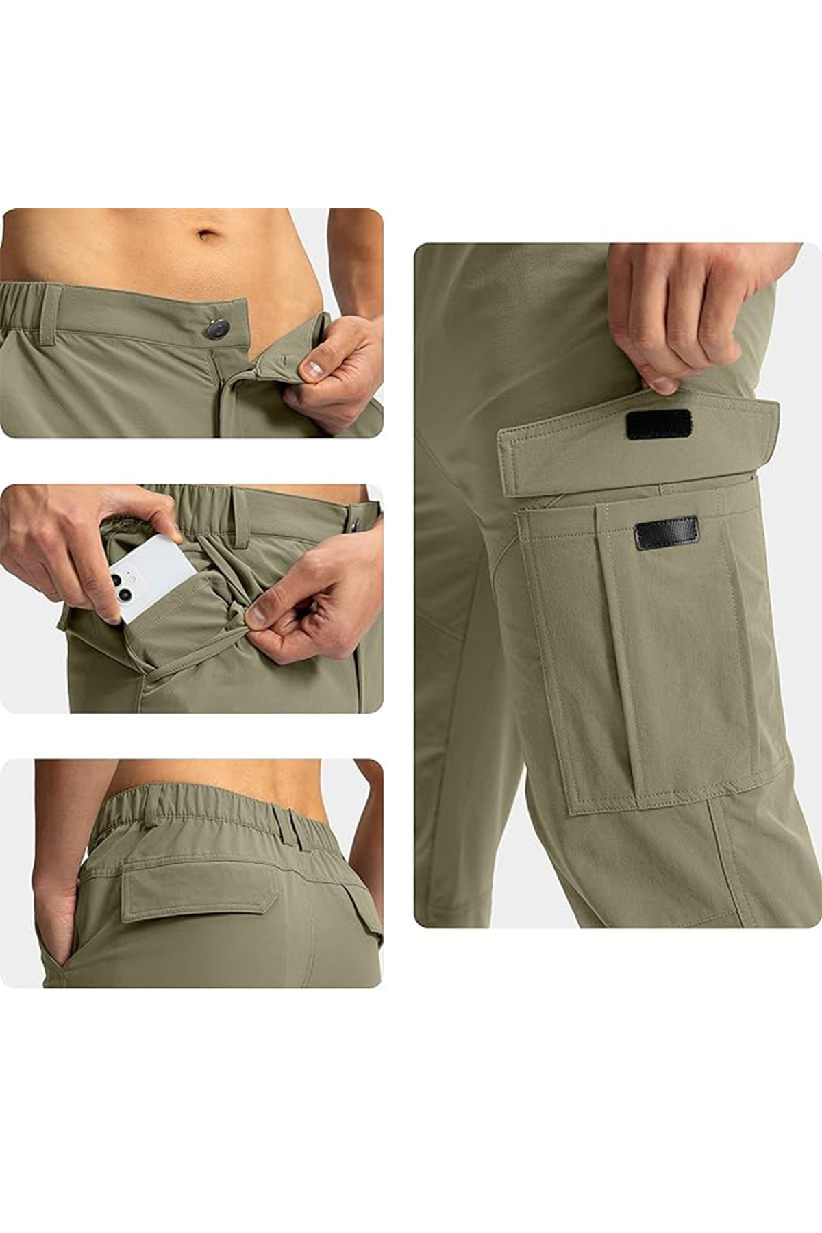 Hafif ve Esnek Kumaş: Suya dayanıklı, dayanıklı, nefes alabilen ve esnek kumaş, iç mekanda veya dış mekanda kendinizi rahat hissetmeniz için teri uzaklaştırır. 7 İşlevsel Cep: Yürüyüş kargo pantolonunda 2 adet kapaklı kargo cep, 2 adet eğimli cep, 2 adet kalça kapaklı cep bulunur