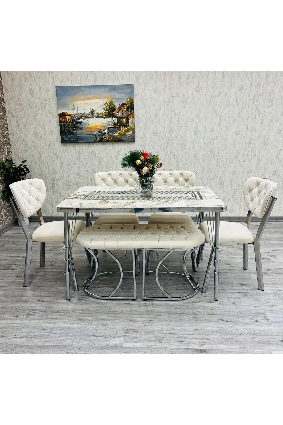 ÜRÜN RESİMDE GÖRÜLDÜĞÜ ÜZERE 1 MASA 4 SANDALYE 1 BENCH FİYATIDIR