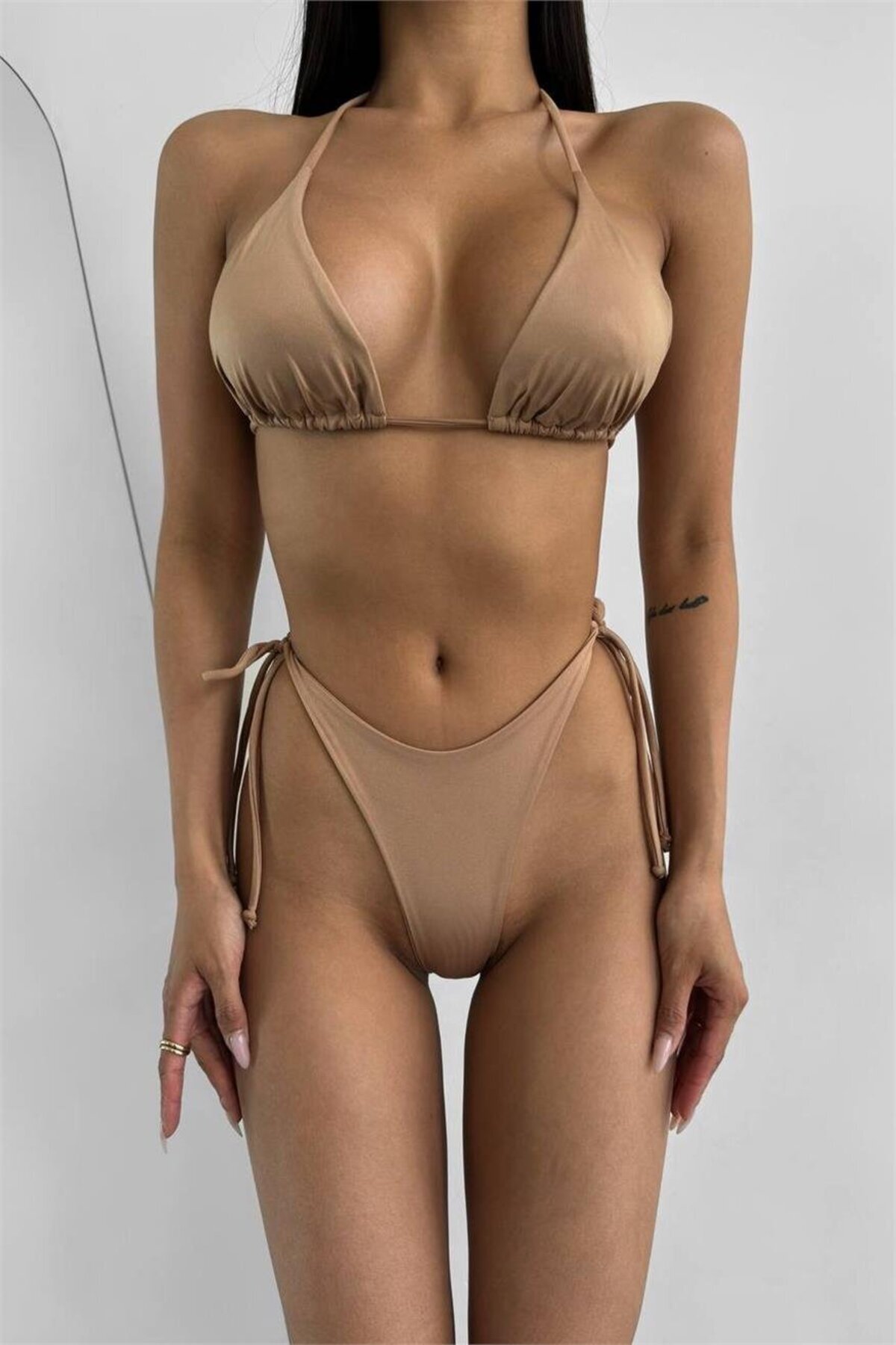 Brazilian Kesim Beyaz Renk Yüksek Bel Bikini