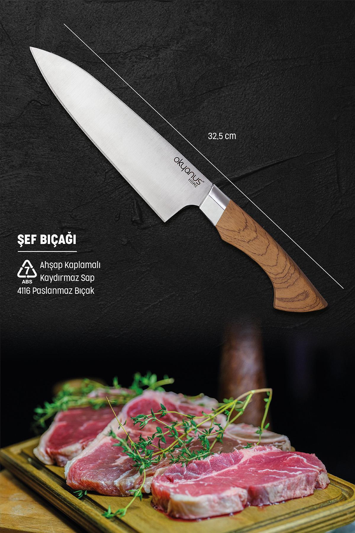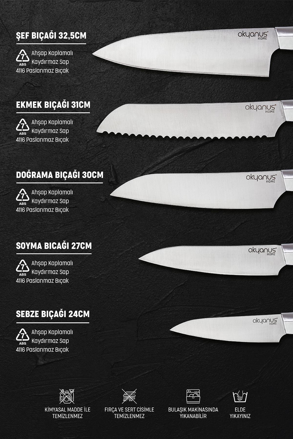 Okyanus Home Ahşap Kaplamalı 5 Parça Bıçak Seti Ürün ölçüleri ürün görsellerinde yer almaktadır.