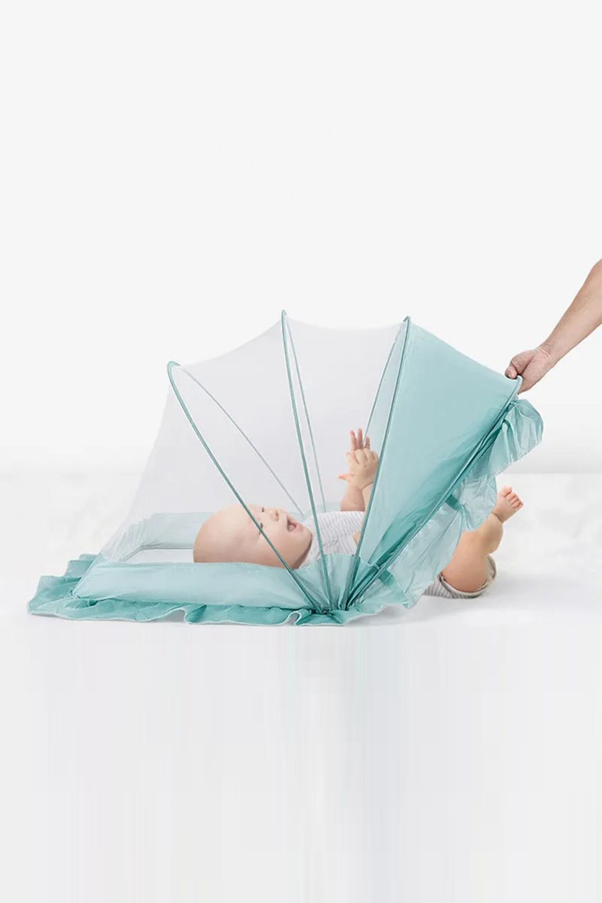 Taşınabilir ve Katlanabilir Tasarım: Selldey Bebek Cibinliği, 98 x 55 x 60 cm boyutlarındadır ve kolayca katlanabilir.
