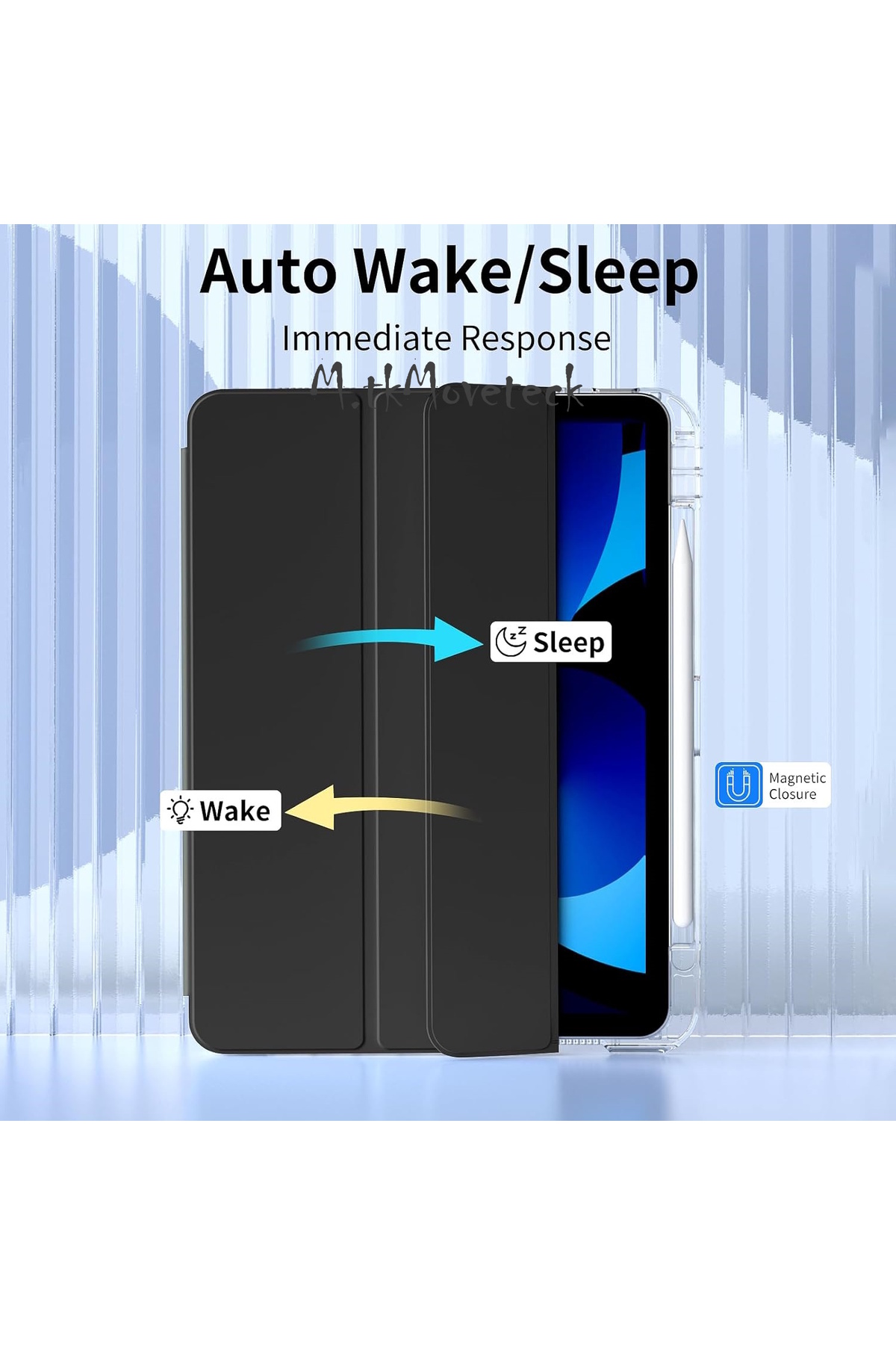 - Akıllı uyku modu özelliği sayesinde, kılıfı açtığınızda tabletiniz otomatik olarak uyku moduna geçer ve enerji tasarrufu sağlar