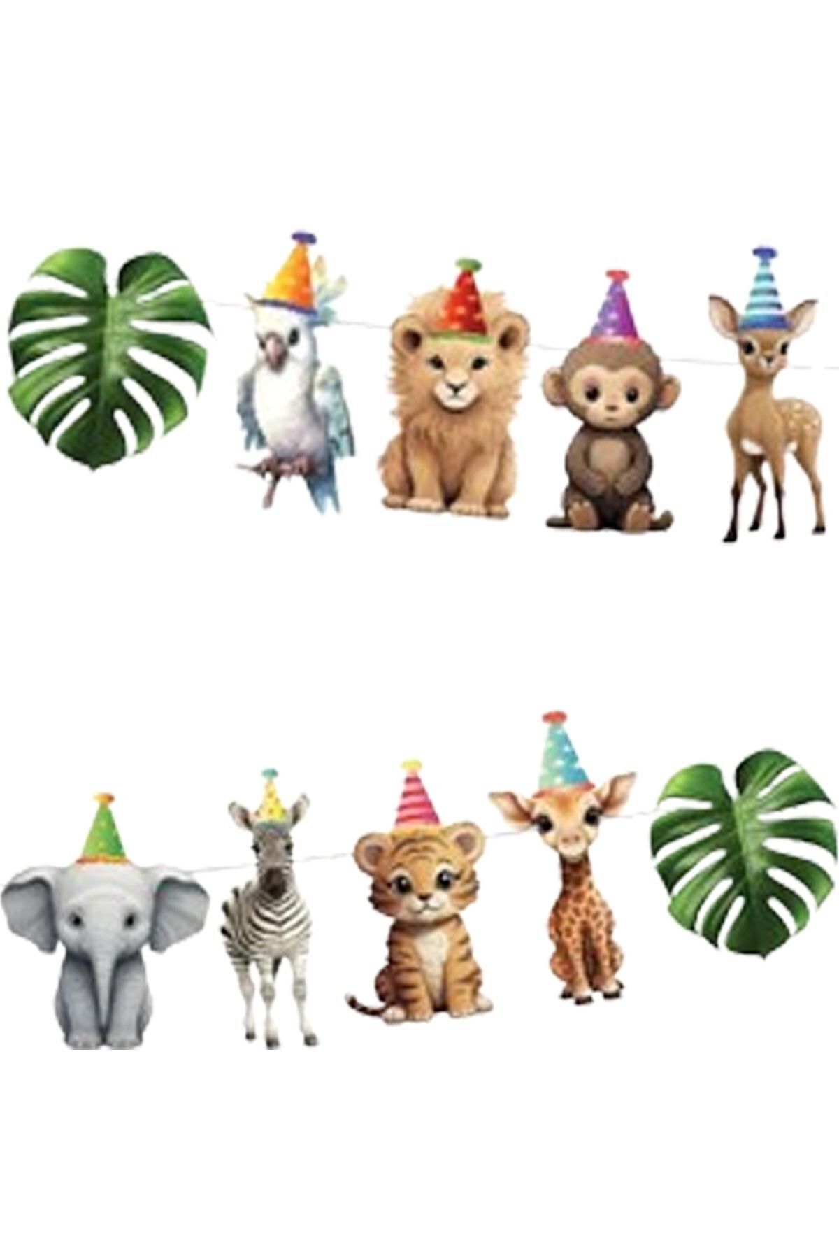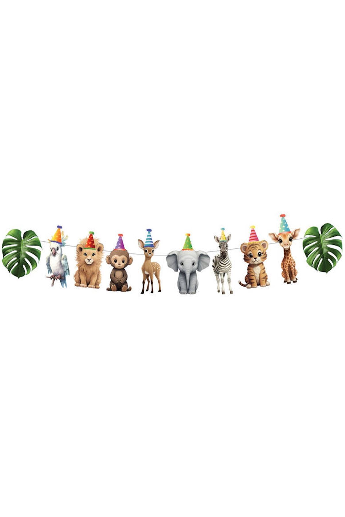 Safari Konsept Şapkalı Sevimli Hayvanlar Temalı Banner , Doğum Günü Partisi