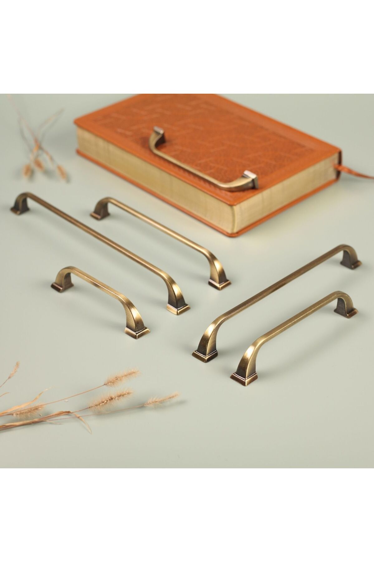 Materyal : Metal Ölçü : 224 mm Renk : Antik Sarı Kulp ölçüleri iki vida deliği arasındaki mesafeyi temsil etmektedir.