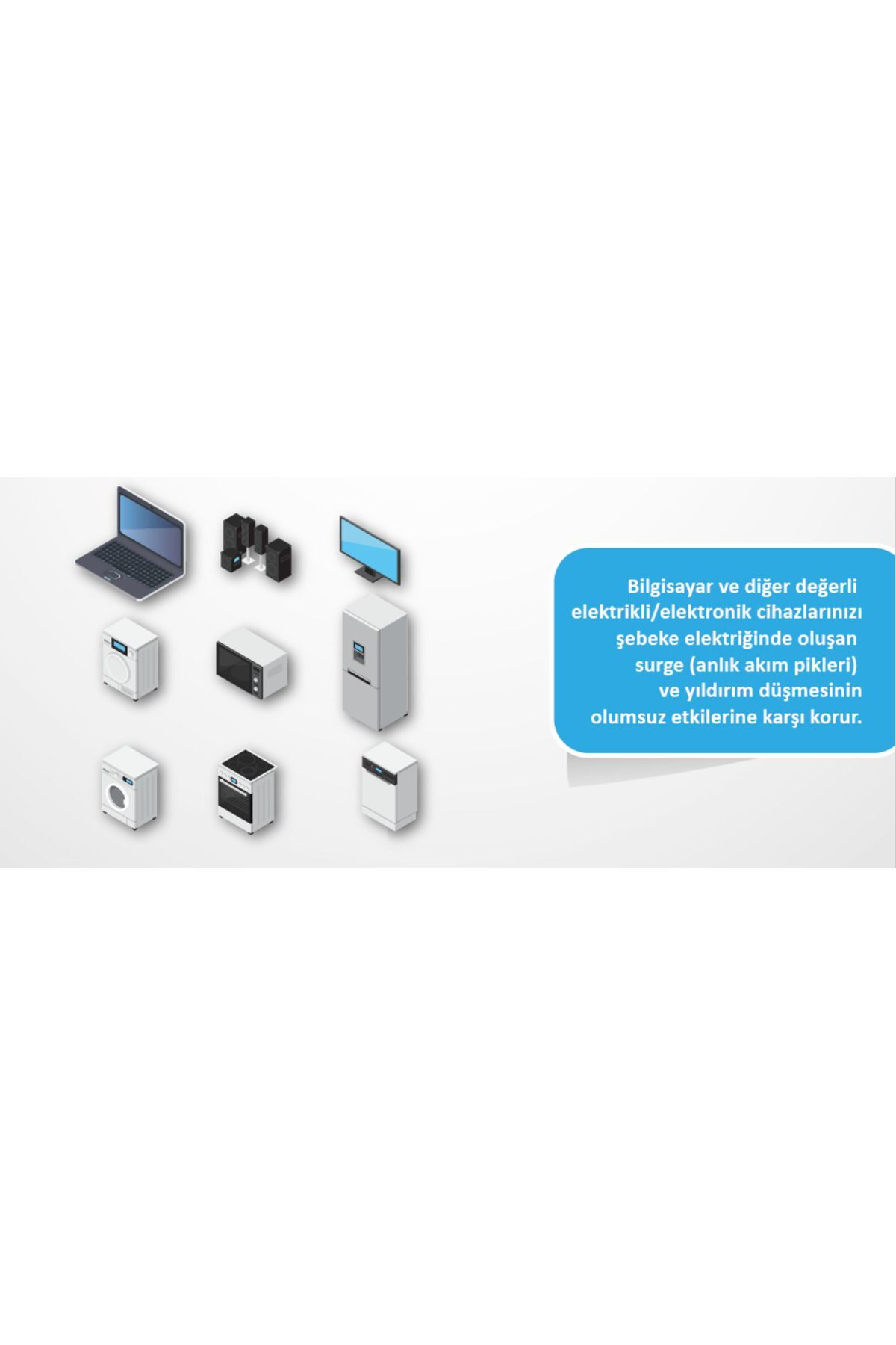 İkili Akım Korumalı Priz Beyaz Anahtarlı Surge Hunter 1050 Joule