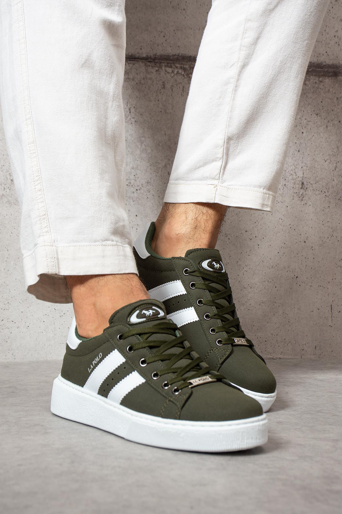 Füme Renk Siyah Detaylı Şeritli Süet Erkek Sneaker