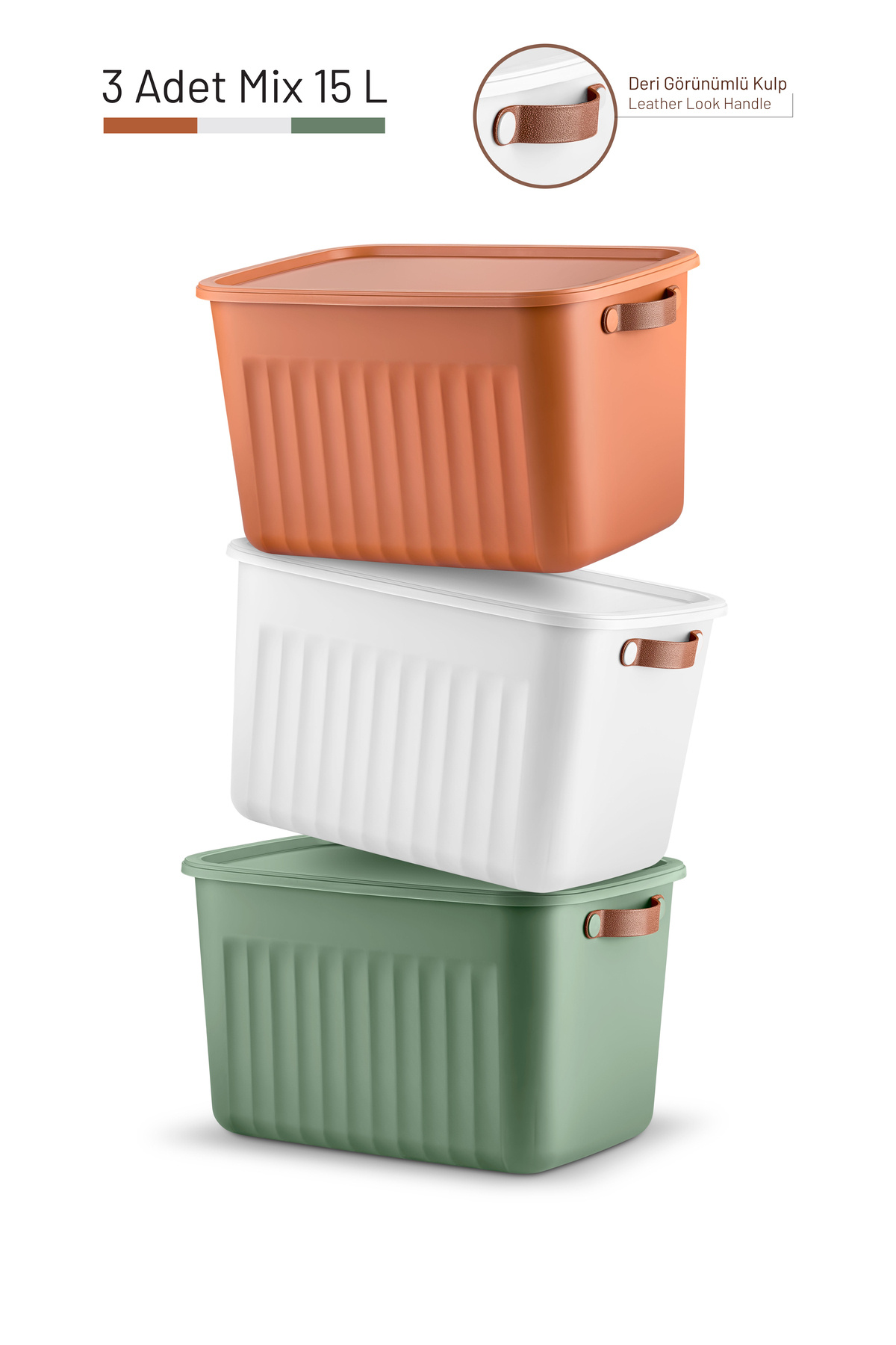 3 adet 15 litre 3'lü saklama kabı seti , banyo ve yaşam alanı düzeninizi sağlamak ve düzenli bir şekilde saklamak için ideal bir seçenektir.