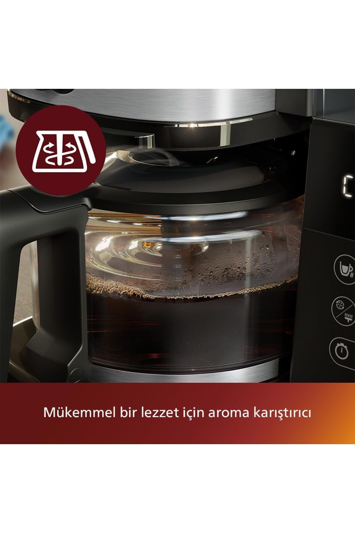 Şeffaf cam karafı sayesinde kahvenizin demlenişini kolayca gözlemleyebilir ve miktarını kontrol edebilirsiniz