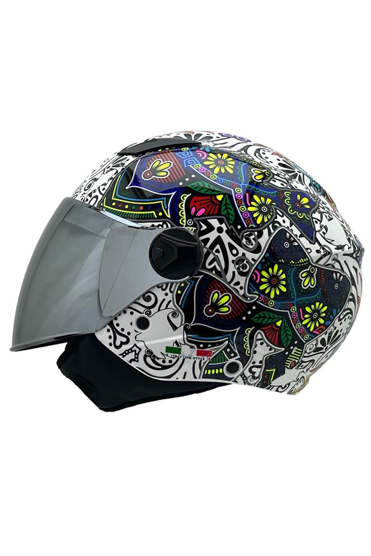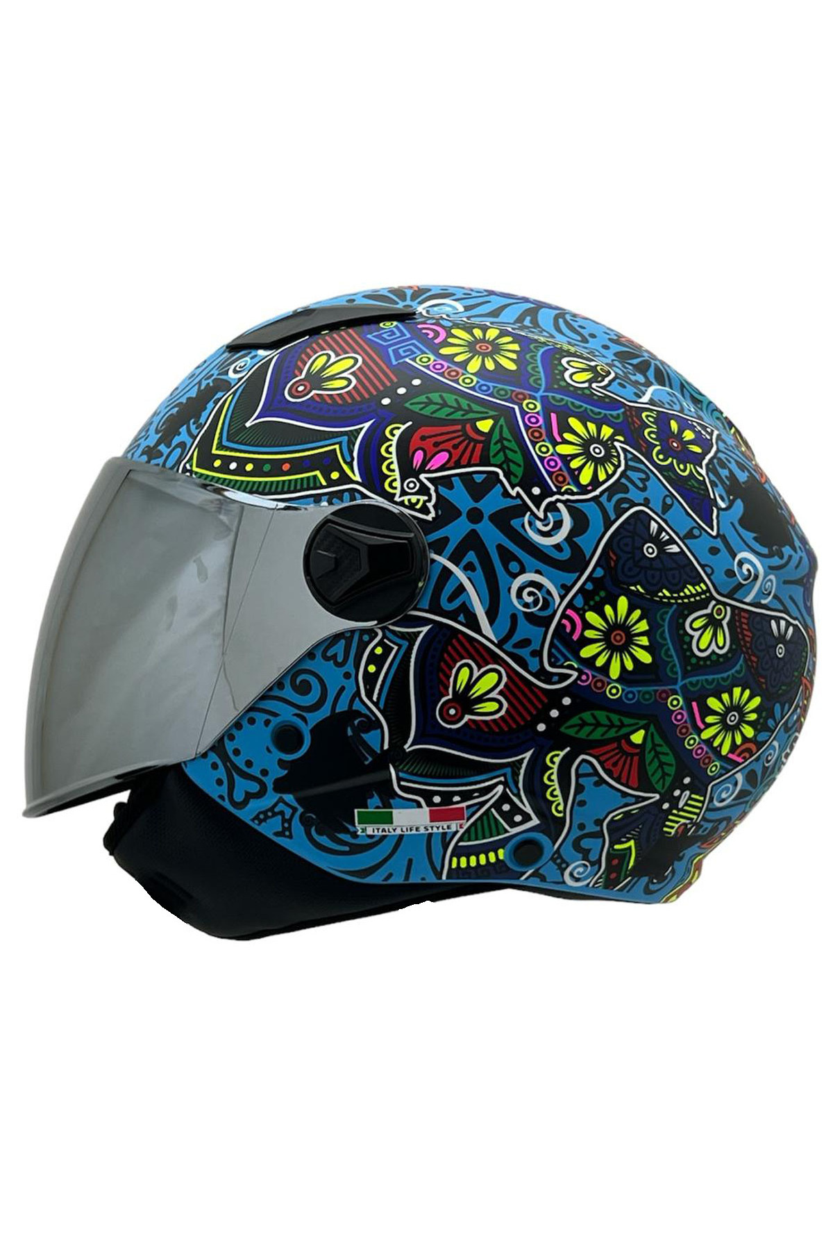 765 KONG SİYAH MAVİ SARI KASK ( GÜNEŞ VİZÖRLÜ )