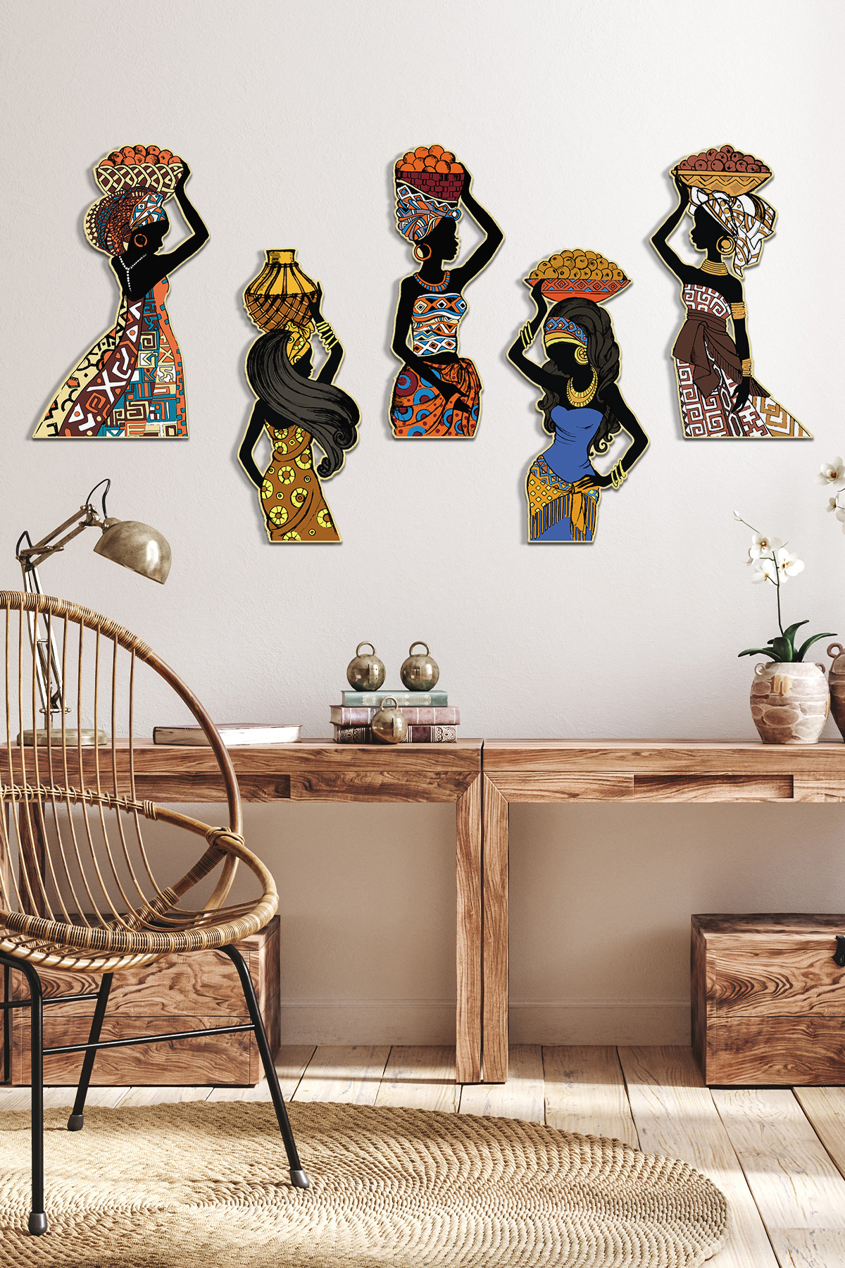 Modern tasarımıyla evinizin dekorasyonuna şık bir dokunuş ekleyen Afrikalı kadınlar etnik duvar dekorasyonu, mekanınıza otantik bir hava katıyor