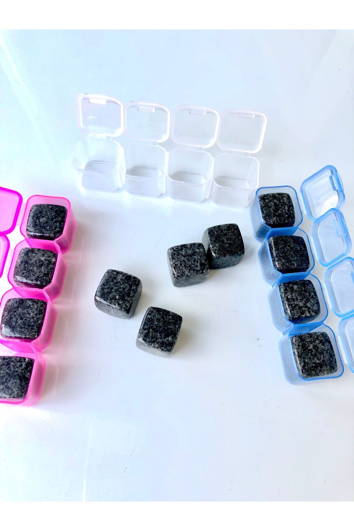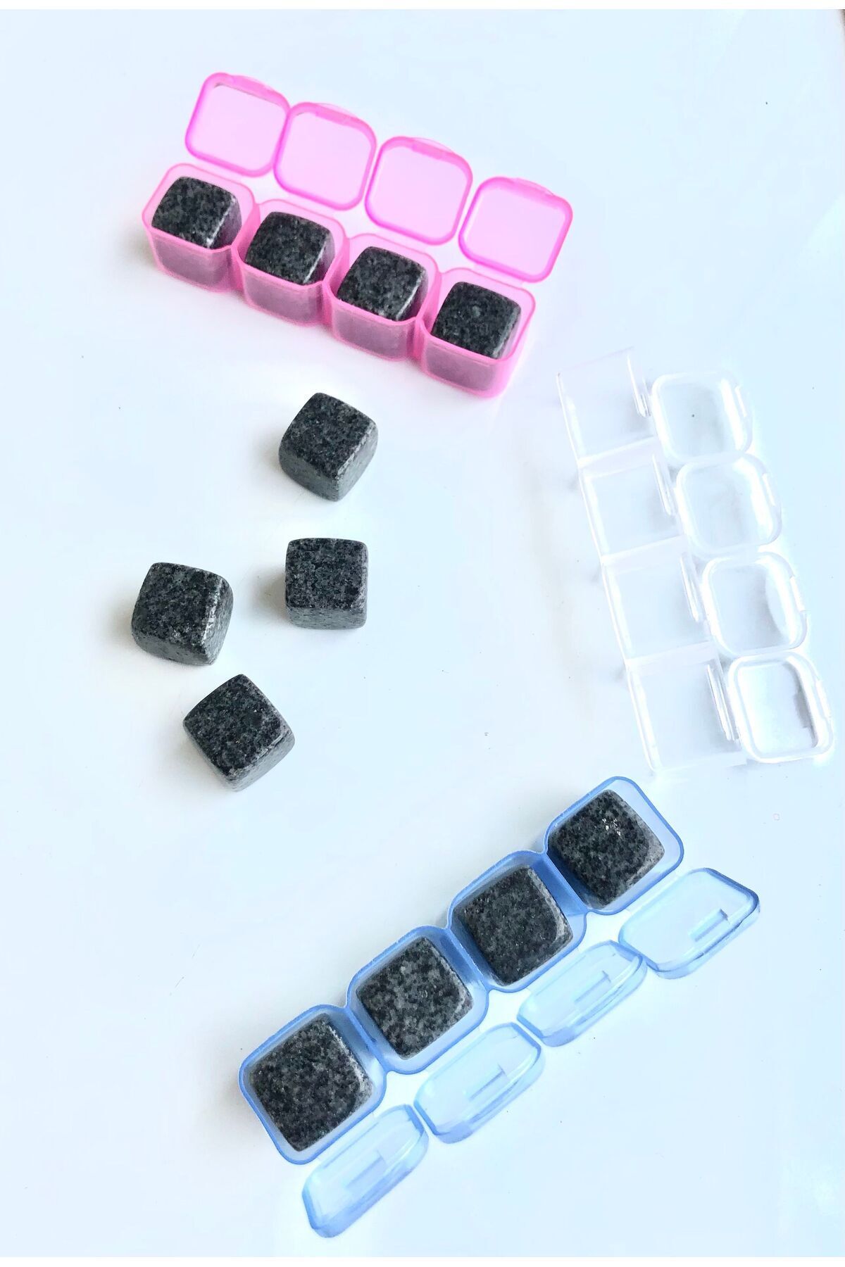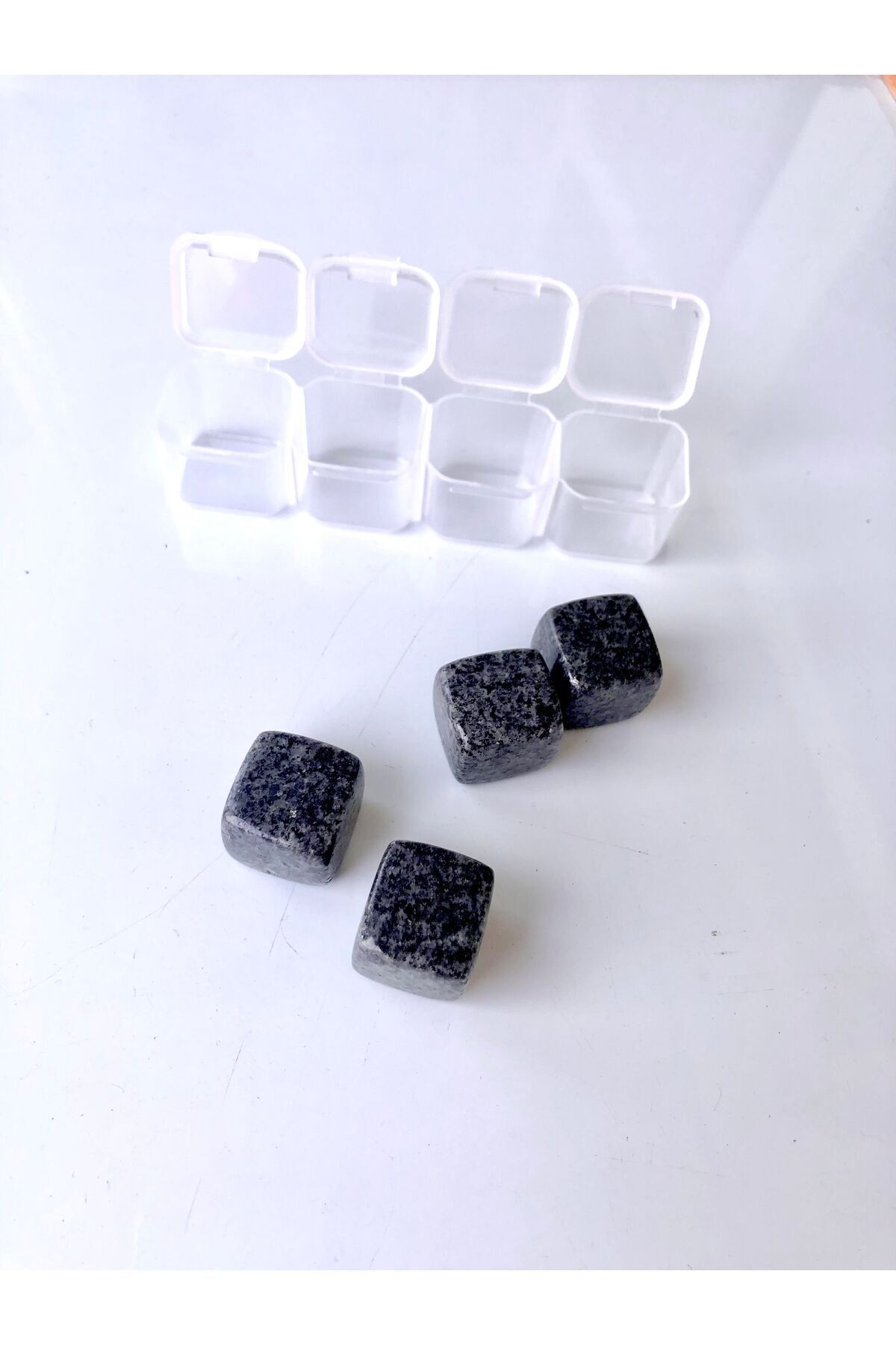 Opsidyen Viski Taşı 4 adet muhafaza kabı ile birlikte gelir, Taş ölçüsü: 1,8 Cm sir