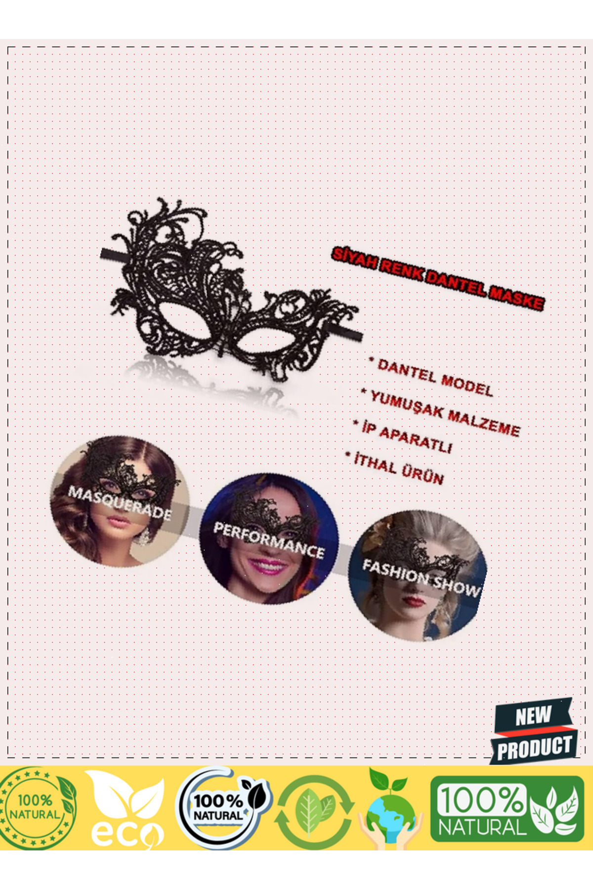 Ölçü : 10 x 23 cm Malzemesi : Dantel , yüze tam oturur Renk : Siyah