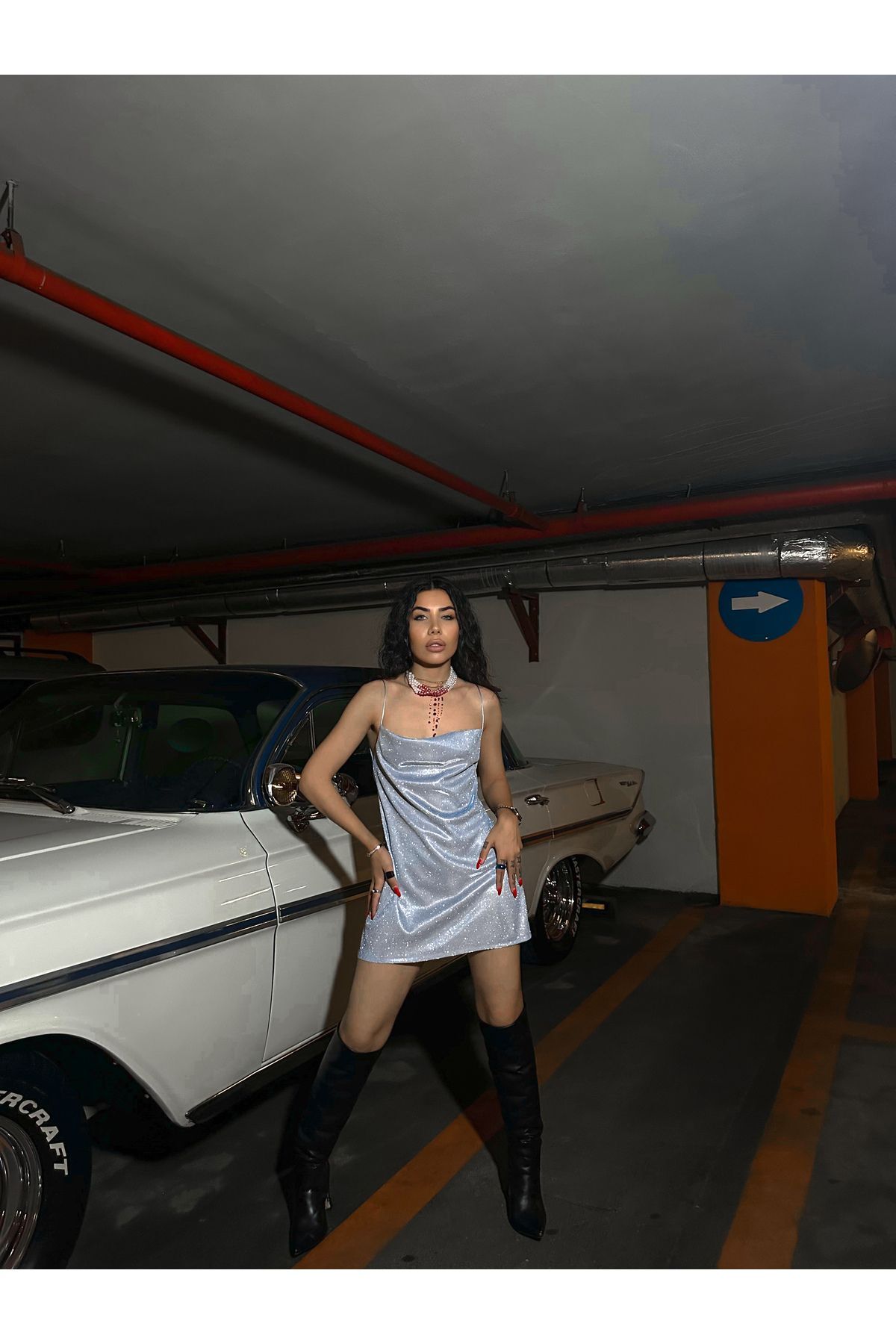 - Şık gece ortamları için ideal olan bu elbise, özel tasarım koleksiyonunun parçası olarak dikkat çekici bir stil vadediyor