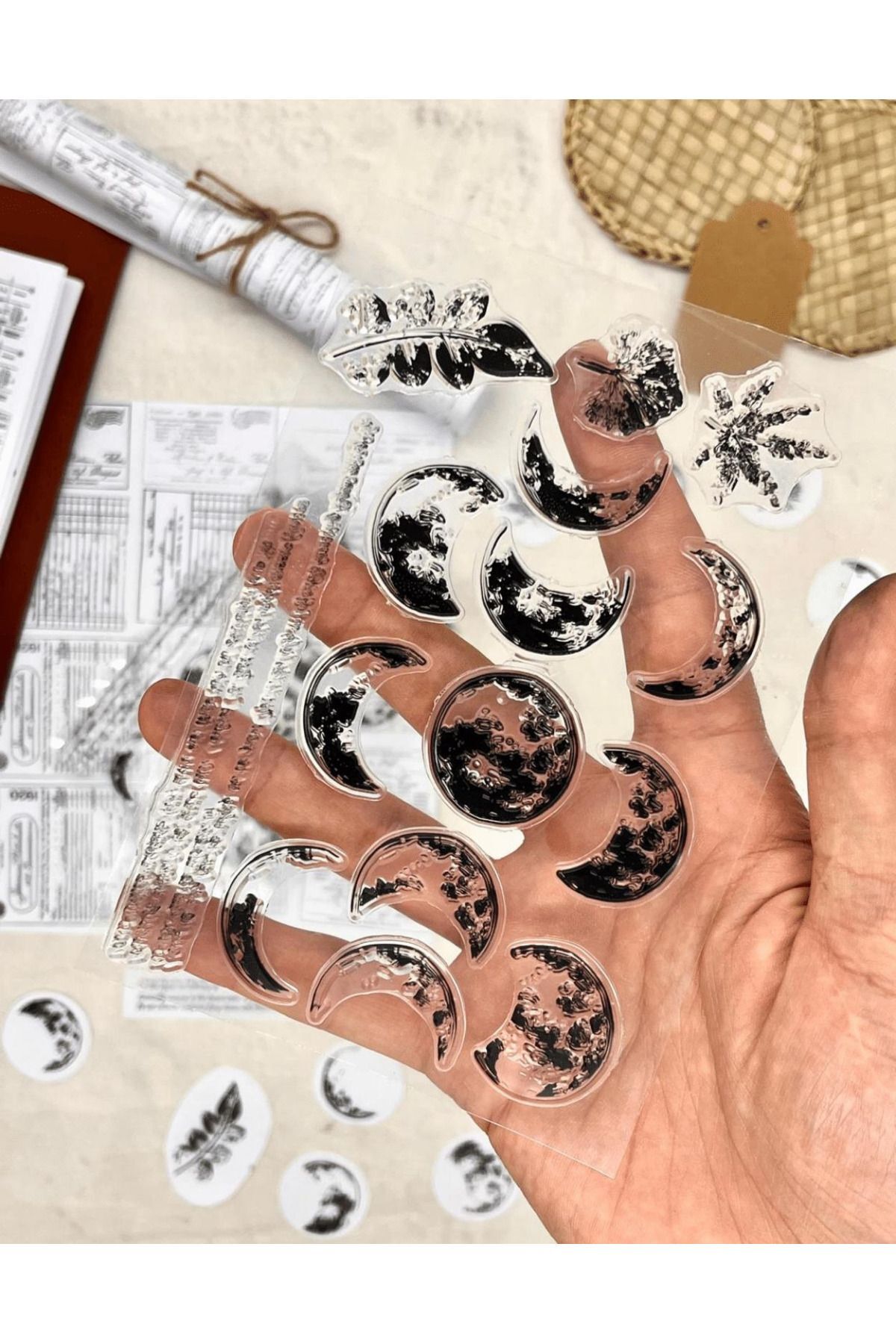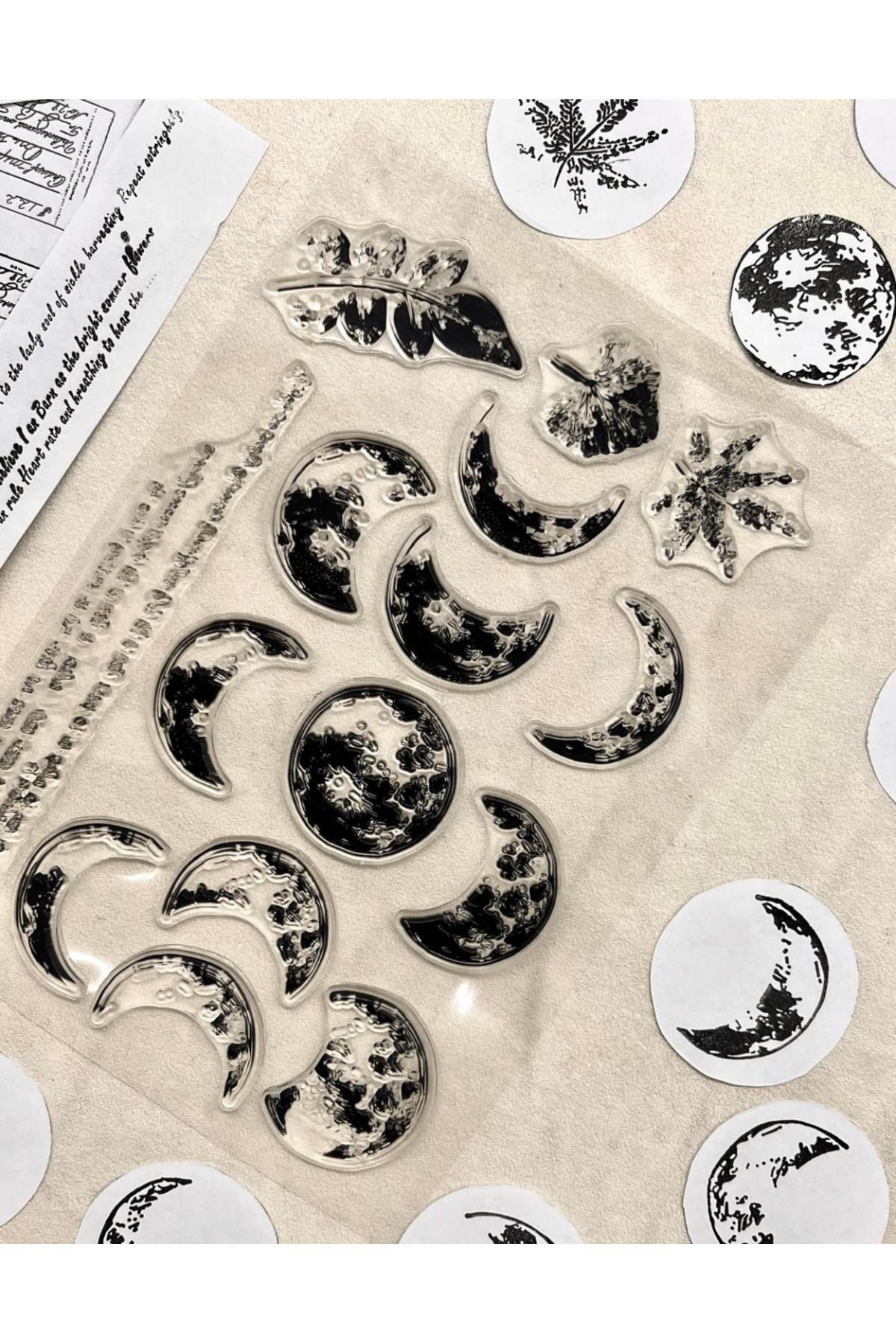 Bu şeffaf damga kartları ay desenlidir