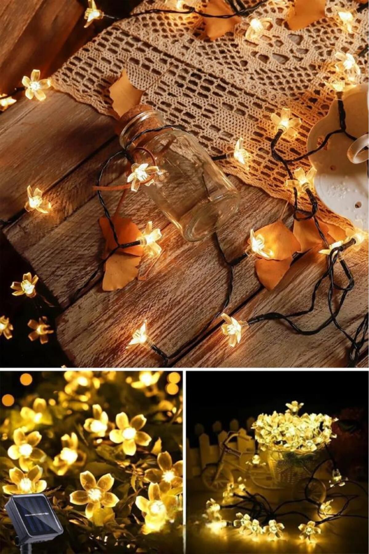 6 Metre 30 Led Çiçek Solar Lamba Güneş Enerjili Sarı Işık Zincir Bahçe Aydınlatma Parti Süs Lambası