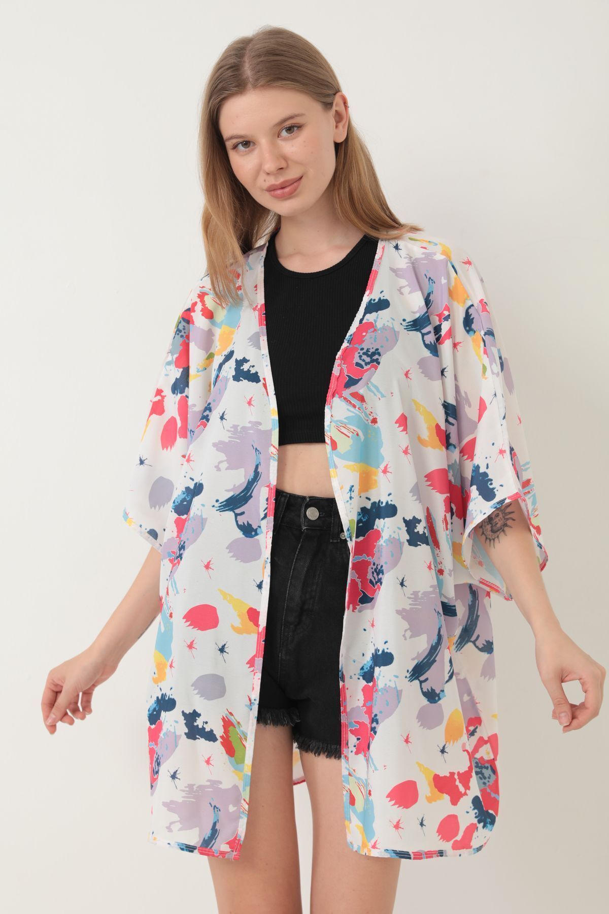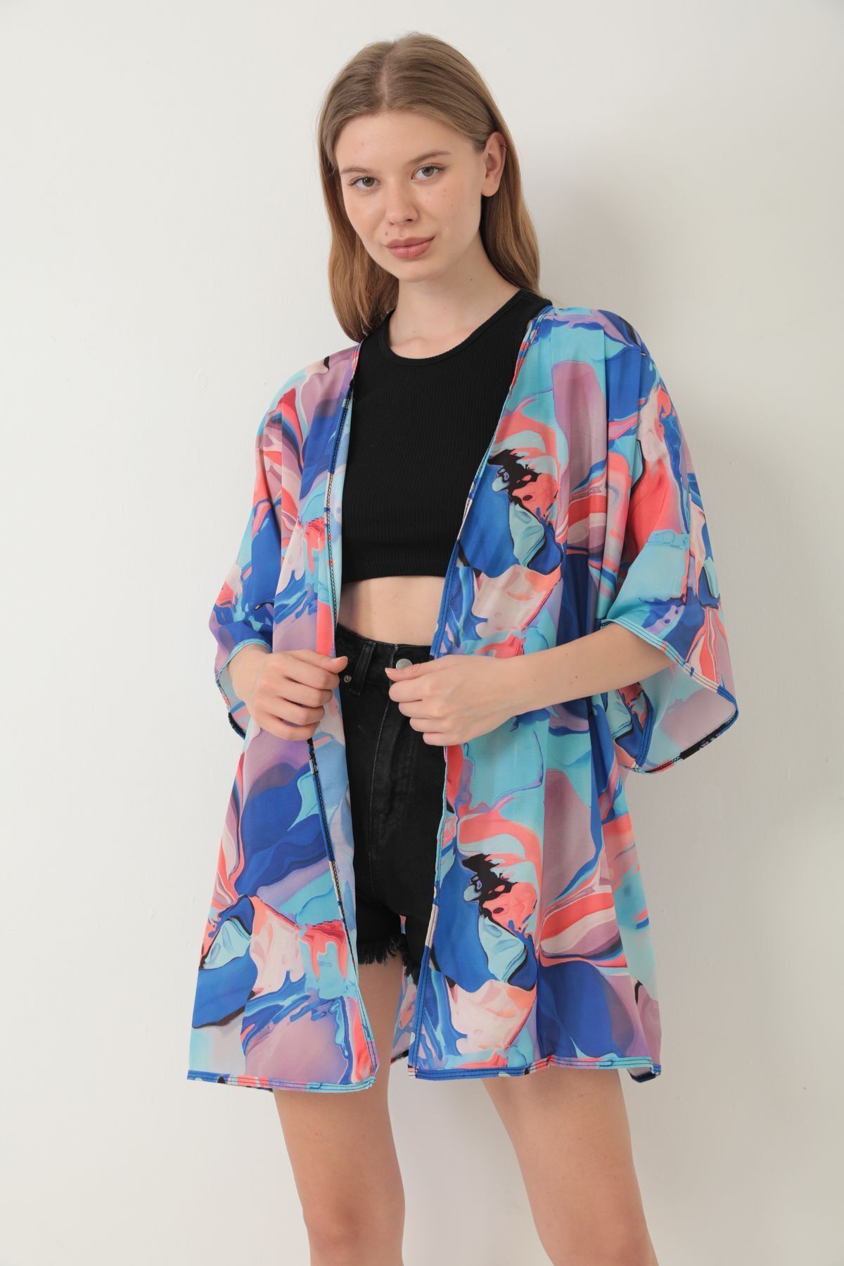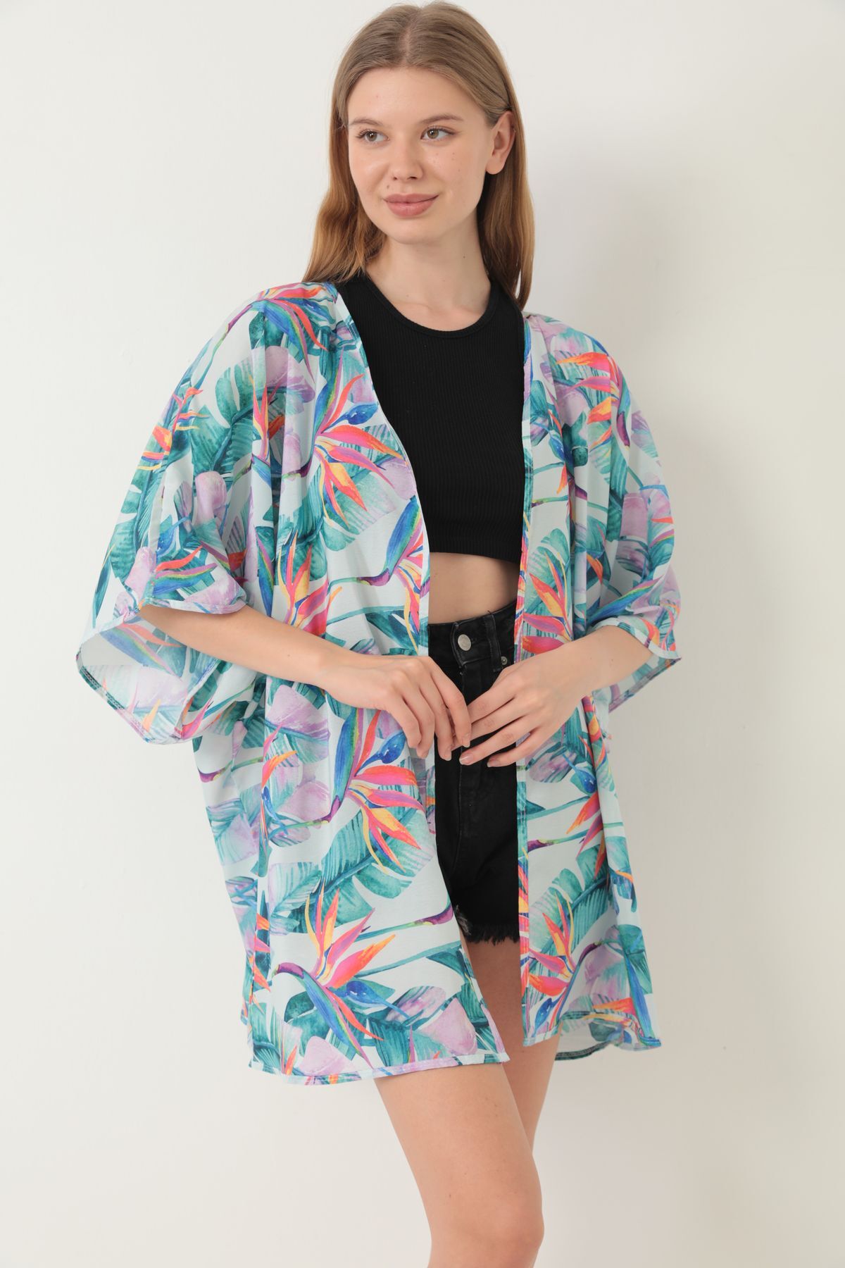 Plaj giyimi için özel olarak tasarlanmış, şık ve rahat bir seçenek olarak öne çıkar