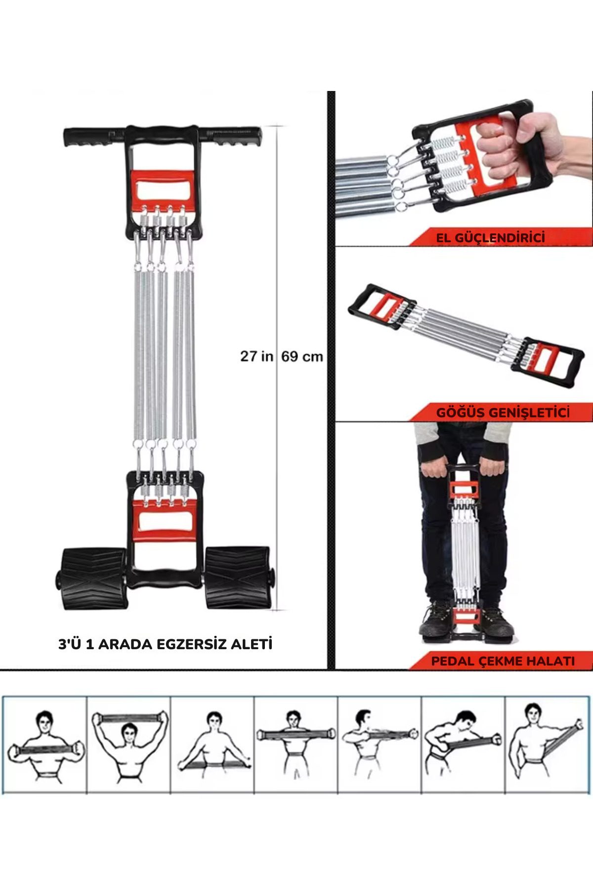 El Ayak Göğüs Yayı Çelik Yay Spor Aleti 3'ü 1 Arada Ayarlanabilir Yay Biceps Curl