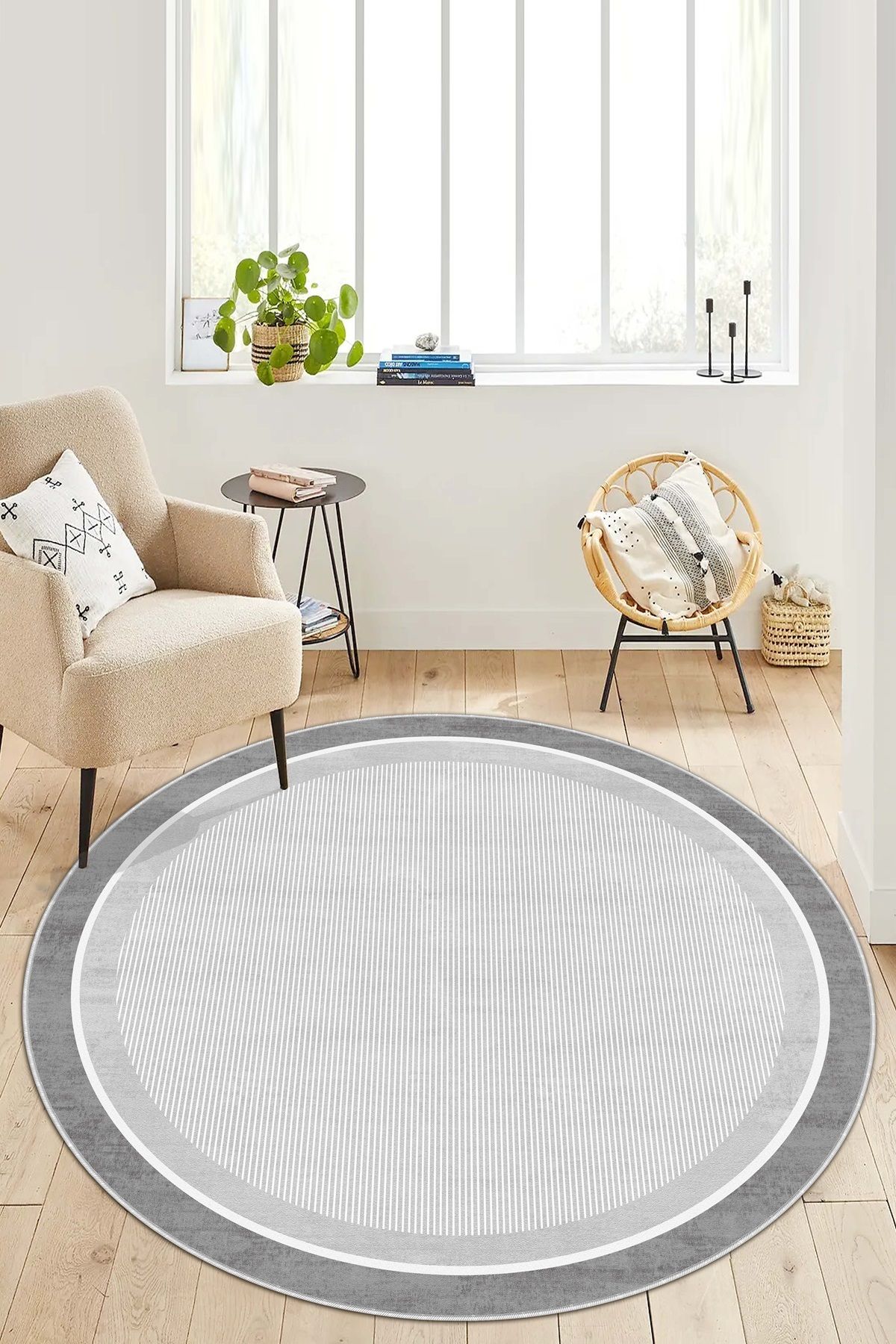 Makinede Yıkanabilir Kaymaz Taban Leke Tutmaz Yuvarlak Bej Mutfak Halısı Salon Halısı ve Yolluk
