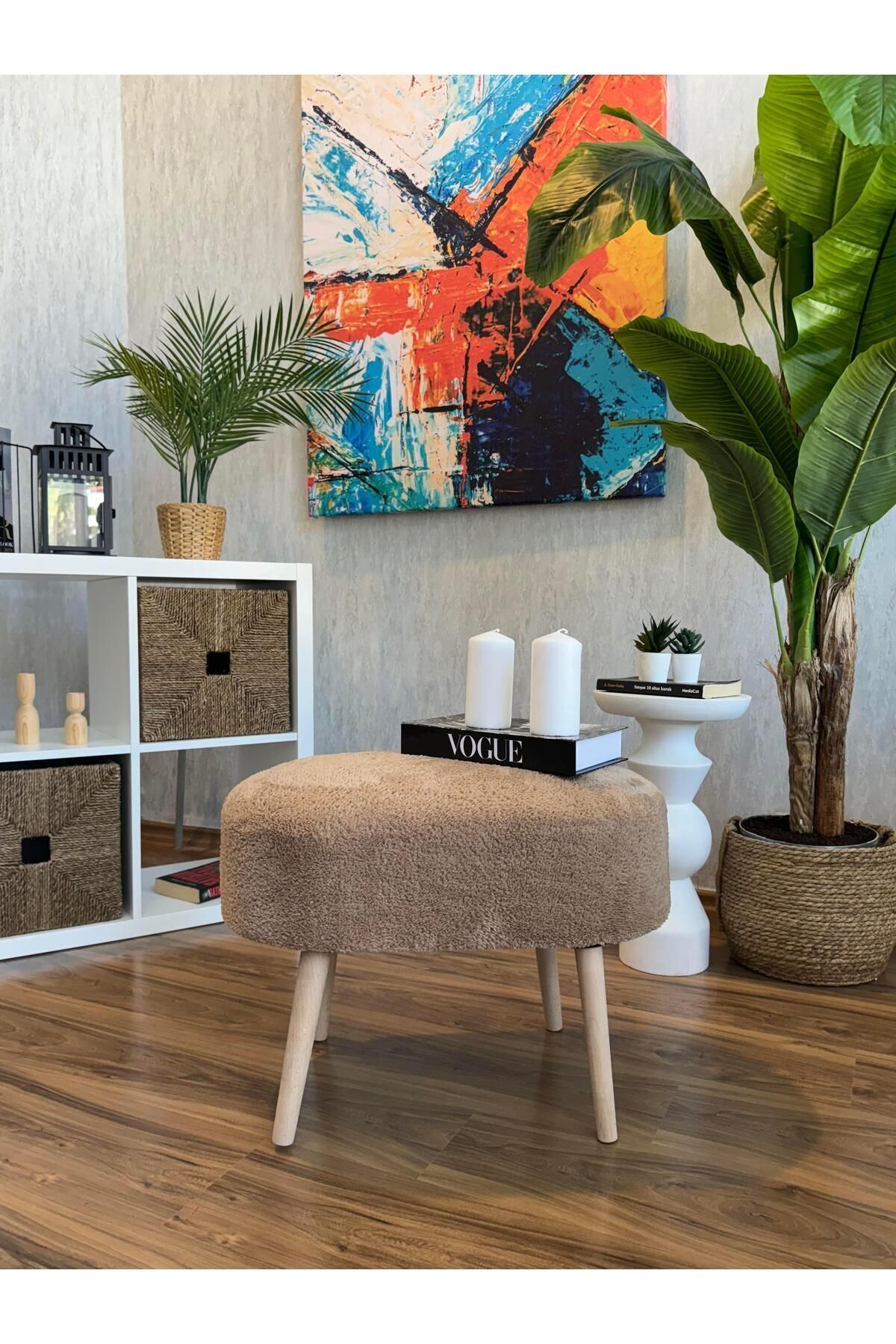 Gürgen Ahşap Ayak Fuşya Teddy Kumaş Pofidik Tedy Handmade Oval Puf Sandalye.