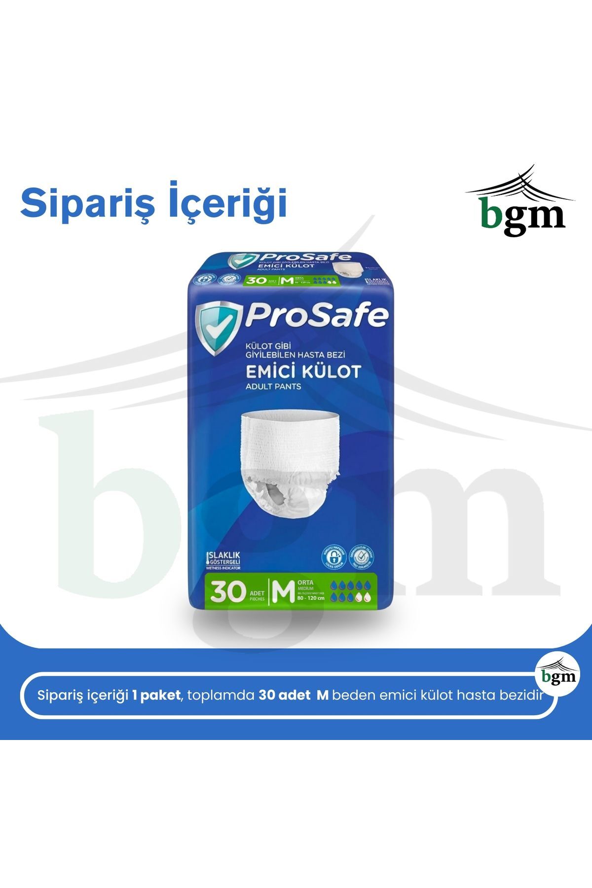 Not: Paket içeriği 1 adet ‘’Prosafe’’ ‘’ Emici KülotYetişkin Hasta Bezi – M Beden -30 ADET (1 PAKET)’’ dir.