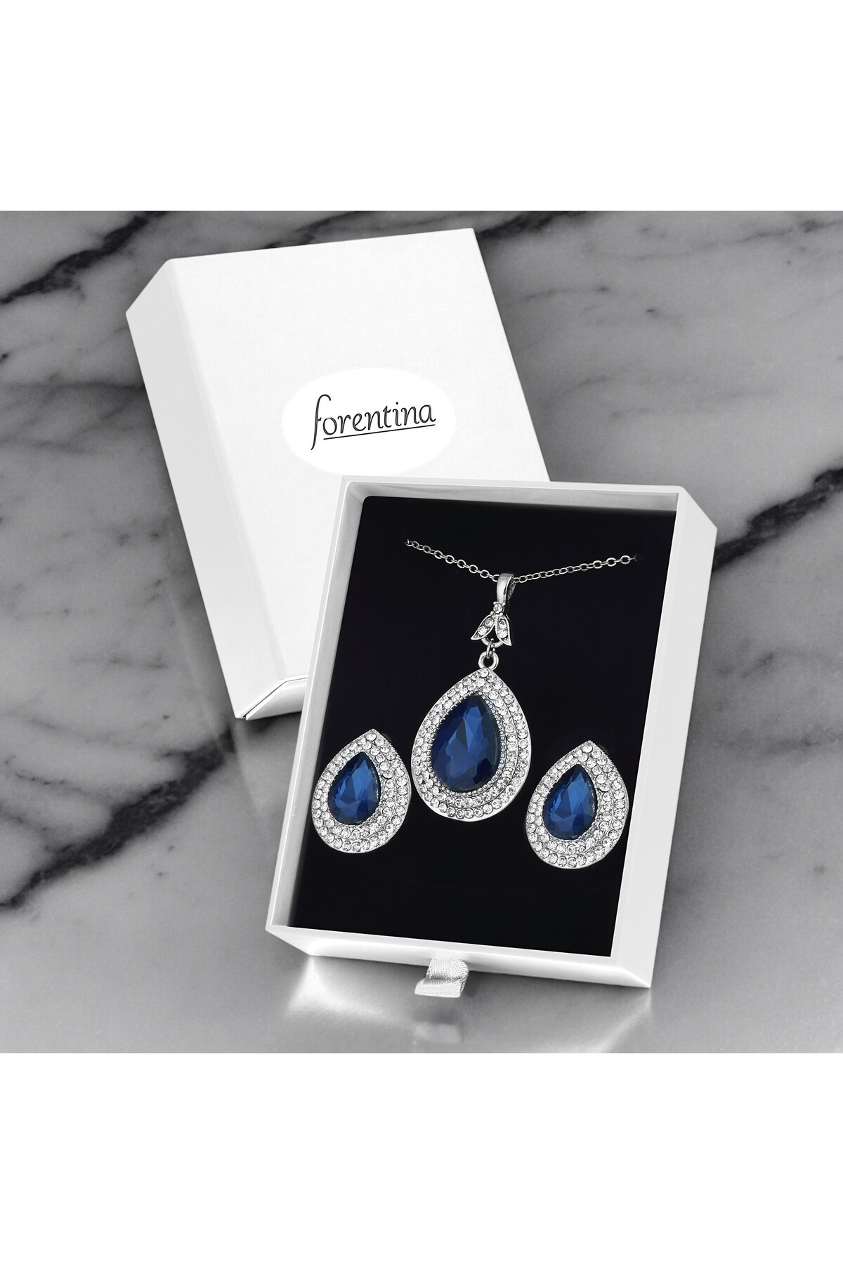Yapısı : BijuteriKolye Uzunluk : 46 Cm ayarlanabilirRenk : griTaş Rengi: LacivertKüpe Modeli: Nokta KüpeÖzel beyaz kutusunda gönderilmektedirTakı setleri, birçok kadının giyim tarzını tamamlayan popüler aksesuarlardan biridir.