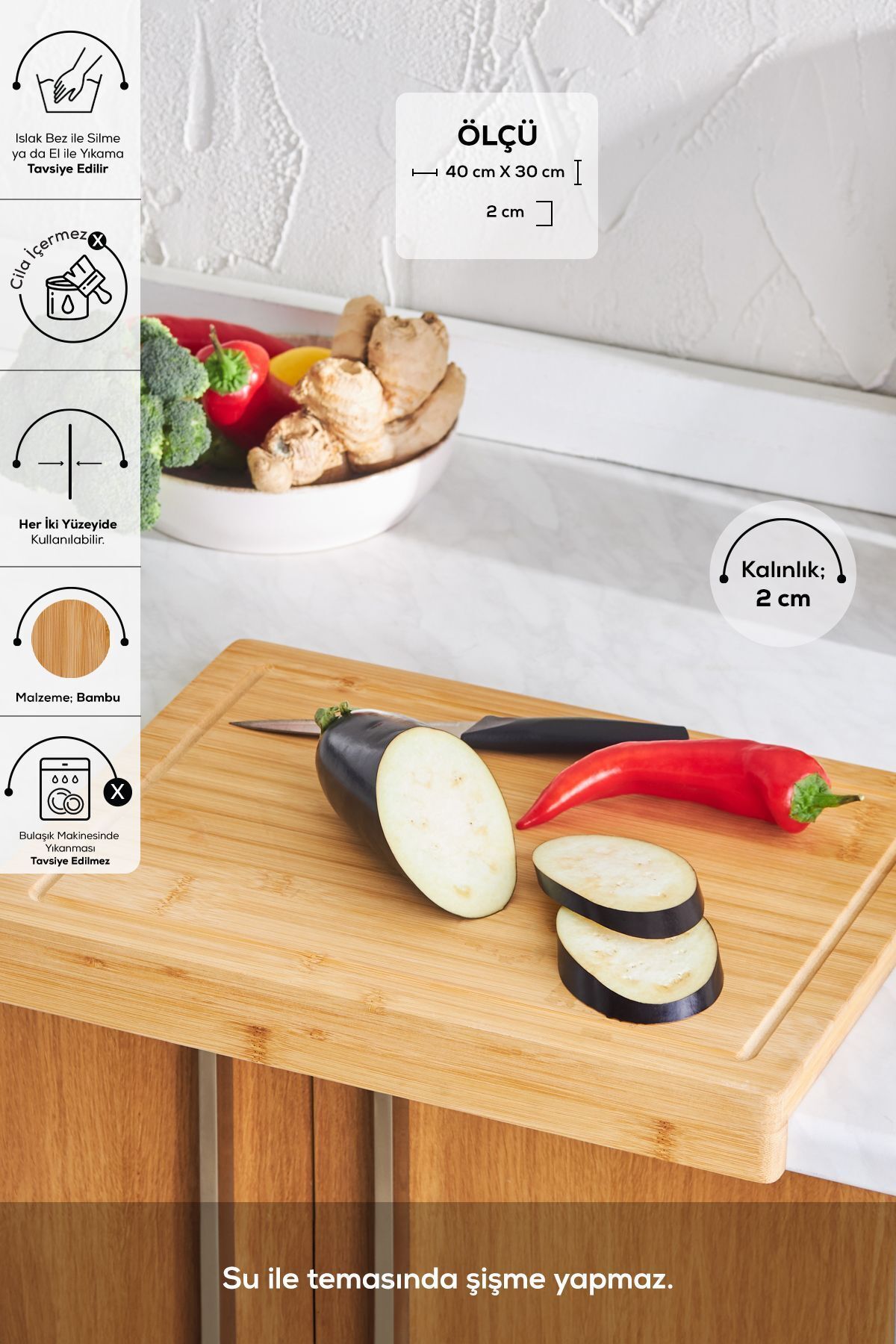40 cm boyutu, geniş yüzey alanı ile büyük yiyecek parçalarını rahatça kesmenize olanak tanır