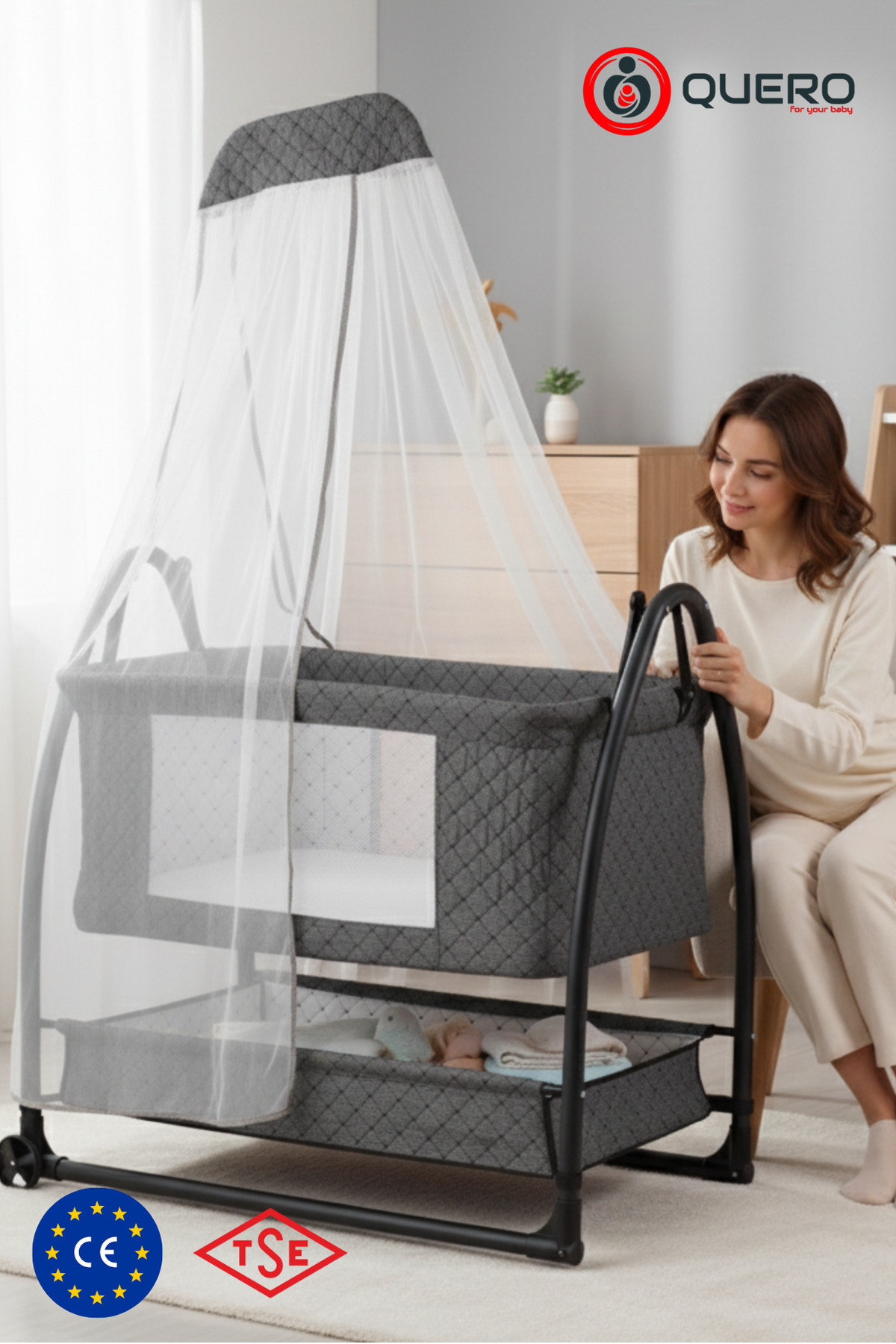 - Yüksekliği 55 cm olan bu beşik, kompakt tasarımıyla yerden tasarruf etmenizi sağlar.