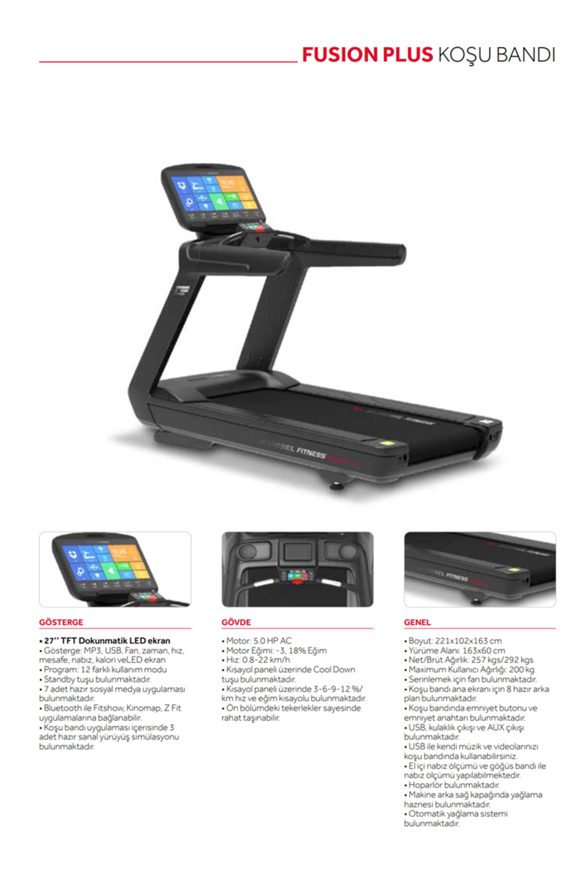 Motorlu çalışma sistemi sayesinde, Fusion plus koşu bandı, her adımda maksimum performans sunar ve egzersizlerinizi kesintisiz bir şekilde gerçekleştirmenize olanak tanır