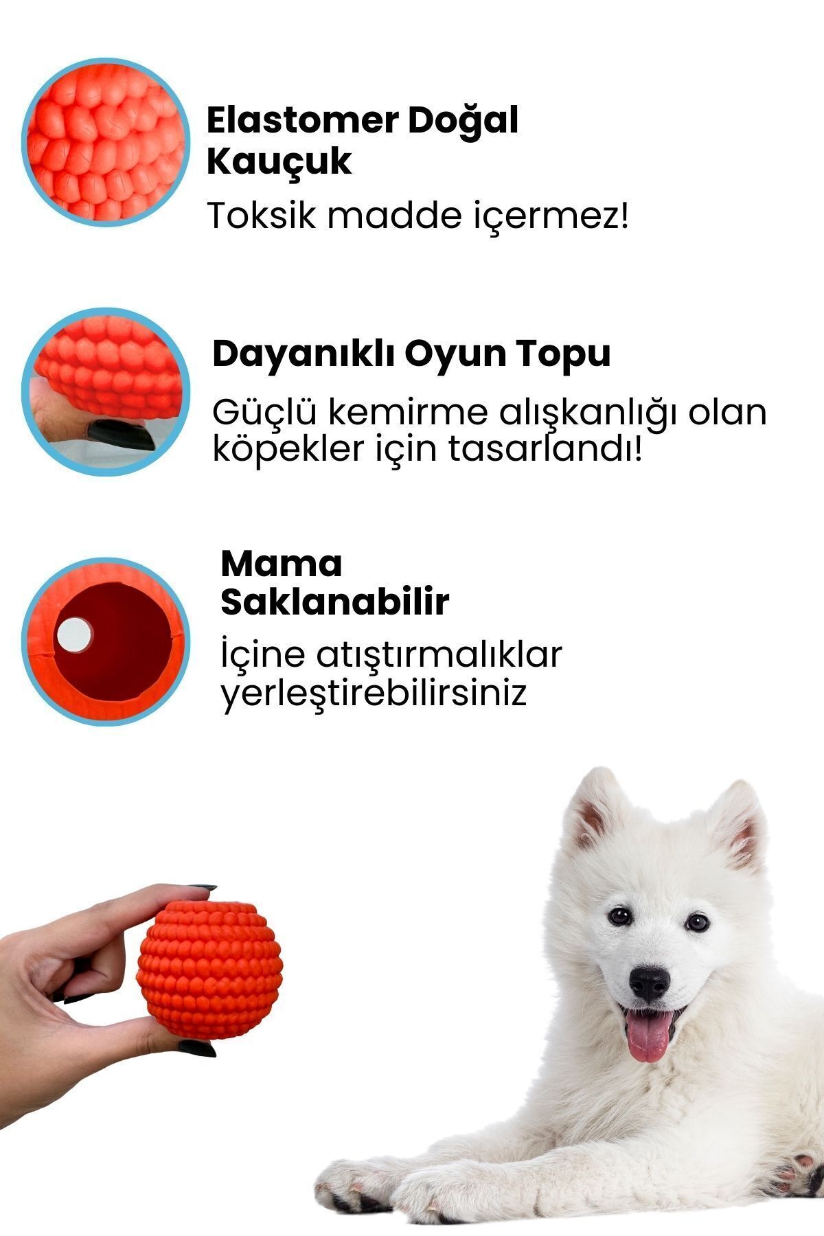 Kauçuk Köpek Isırma Topu Turuncu Renkli Ödül Maması Saklanabilen Köpek Oyuncağı Toksik Madde Içermez