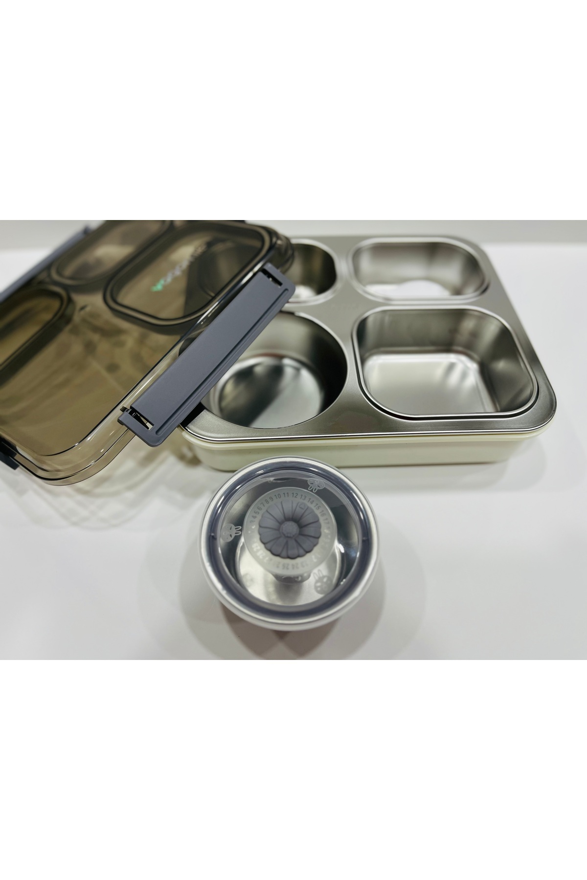 Bento Paslanmaz Çelik Tek Kat 4 Bölmeli (Sos Kaseli) 1200ml Beslenme Kutusu Sefer Tası