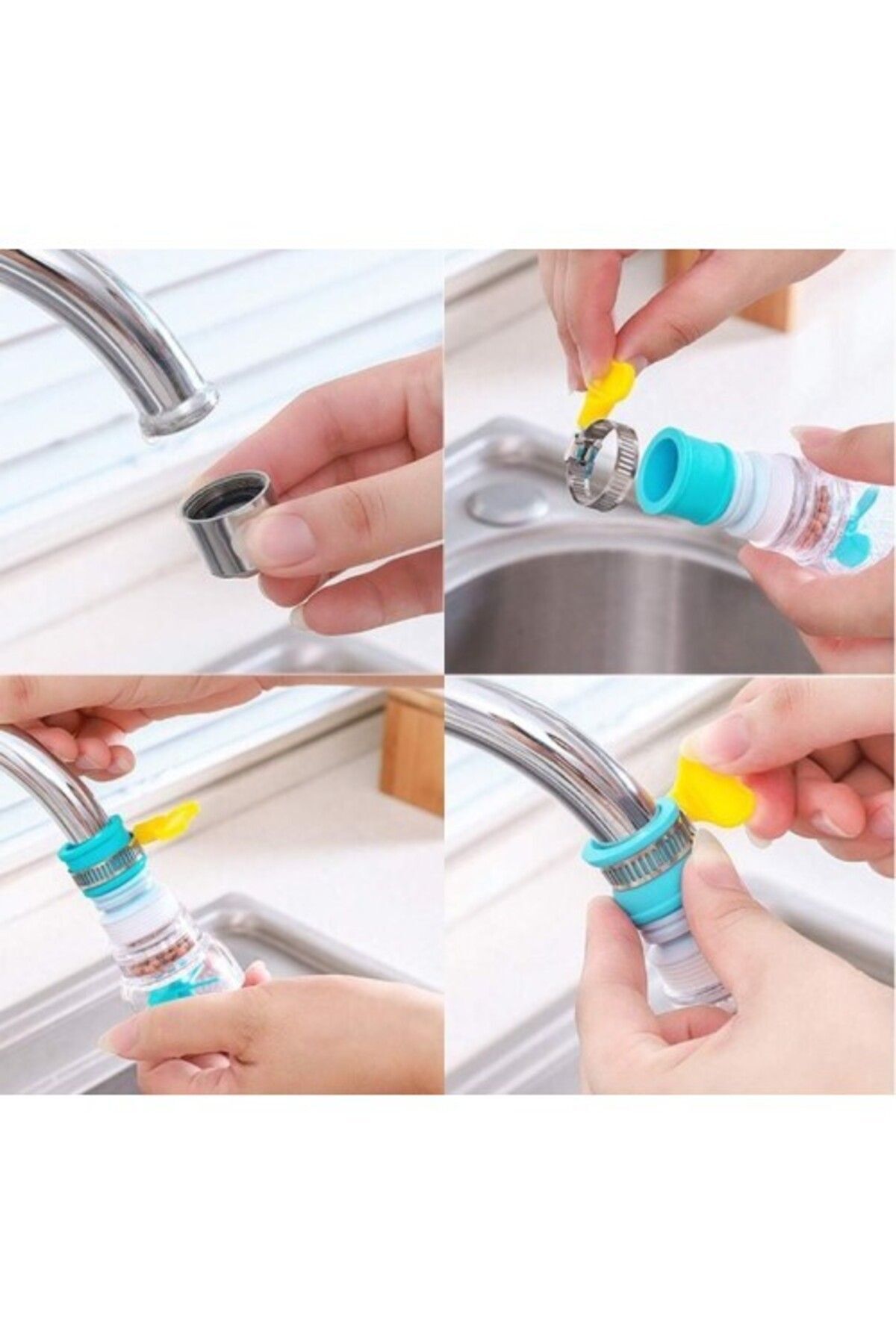 Musluk başlığı yumuşak hortum sayesinde uzatılabilir ve suyu hedeflenen yöne boşaltmak için 360 derece döndürülebilir. Böylece mutfak lavabolarının temizliği kolaylaşır ve temizlik alanı yayılır.Duş çıkışlı musluk püskürtme başlığı su akışının darbesini azaltır. Su sıçramasını önler ve %30 - %70 su tasarrufu sağlar.Musluk filtresi aktif mineral taşlar içerir. İnciler su temizliği için kullanılır ve bakterilere güçlü bir etkisi vardır. 16 – 23 mm çaplı musluğa uyar. Hortum kelepçesi ile kolayca sabitlenir, sıkı ve kaymaz. Hem sıcak hem de soğuk su kabul edilebilir.Renk: MAVİ ,YEŞİL,PEMBESTOK DURUMUNA GÖRE KARIŞIK RENK GÖNDERİLECEKTİR