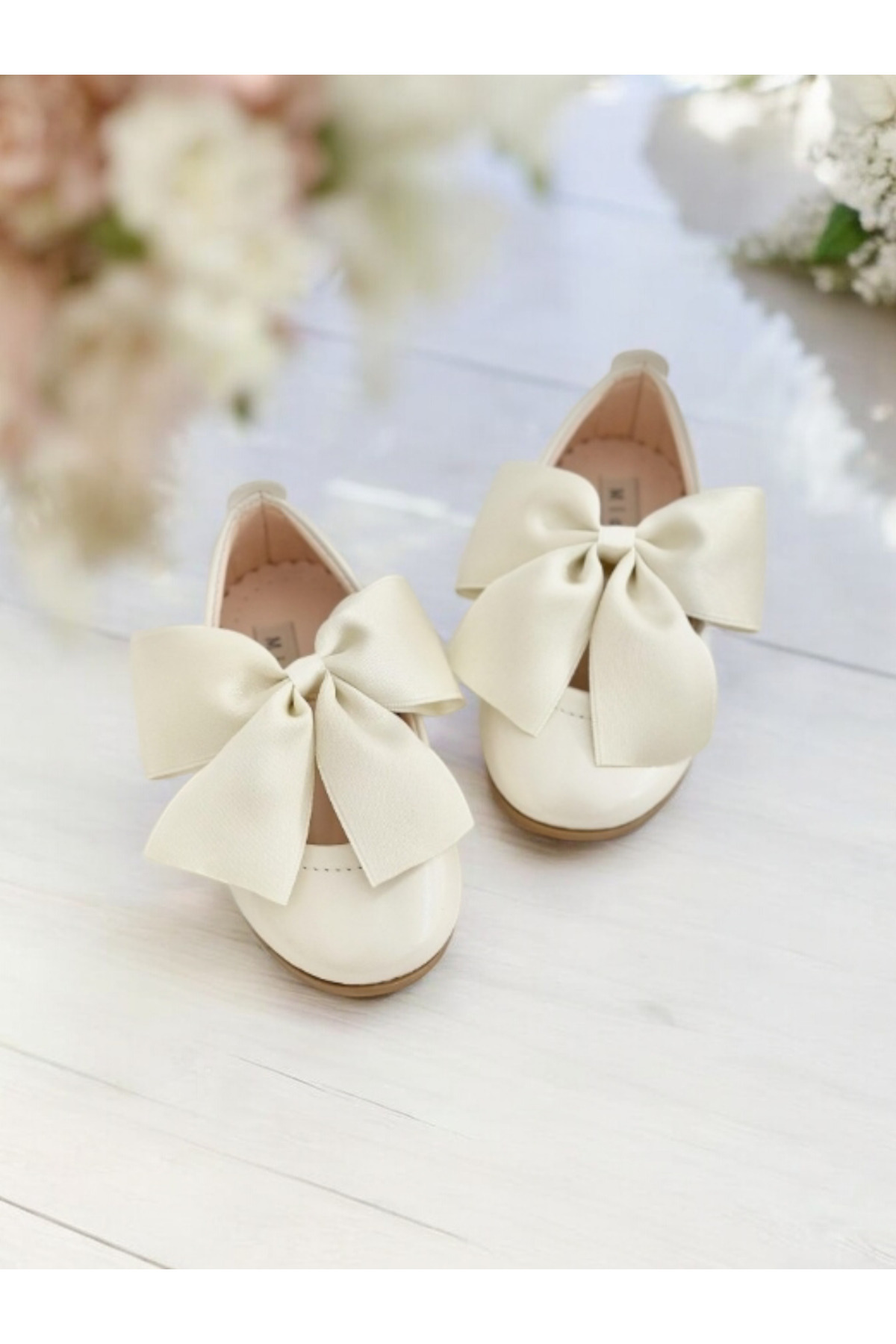 -bir numara küçük tercih edebilirsiniz - Krem rengi fiyonk detaylarıyla süslenmiş, şıklığı ve rahatlığı bir arada sunan ortopedik babet.