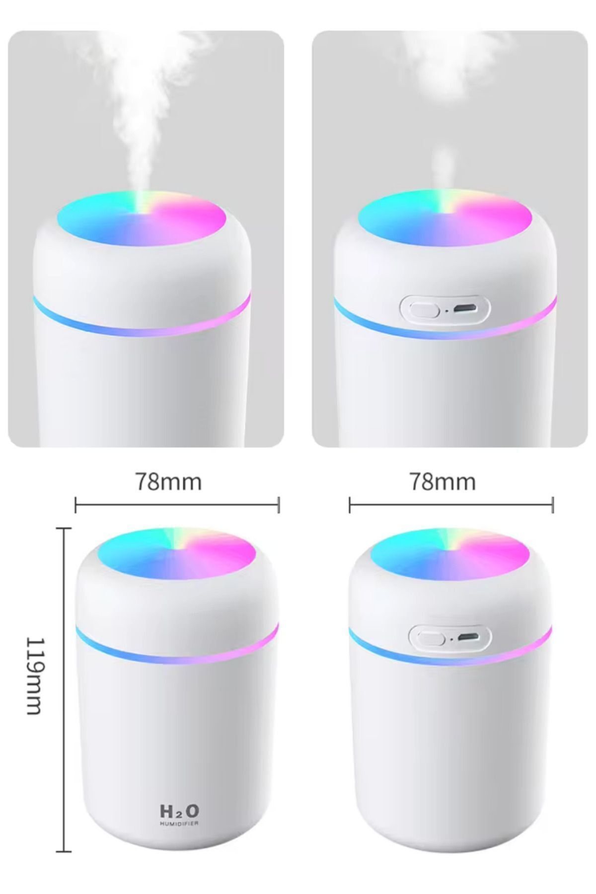 Estetik ve Kompakt Tasarım: 300ml kapasiteli bu hava nemlendirici, zarif ve modern tasarımı sayesinde her türlü yaşam alanına mükemmel bir şekilde uyum sağlar.