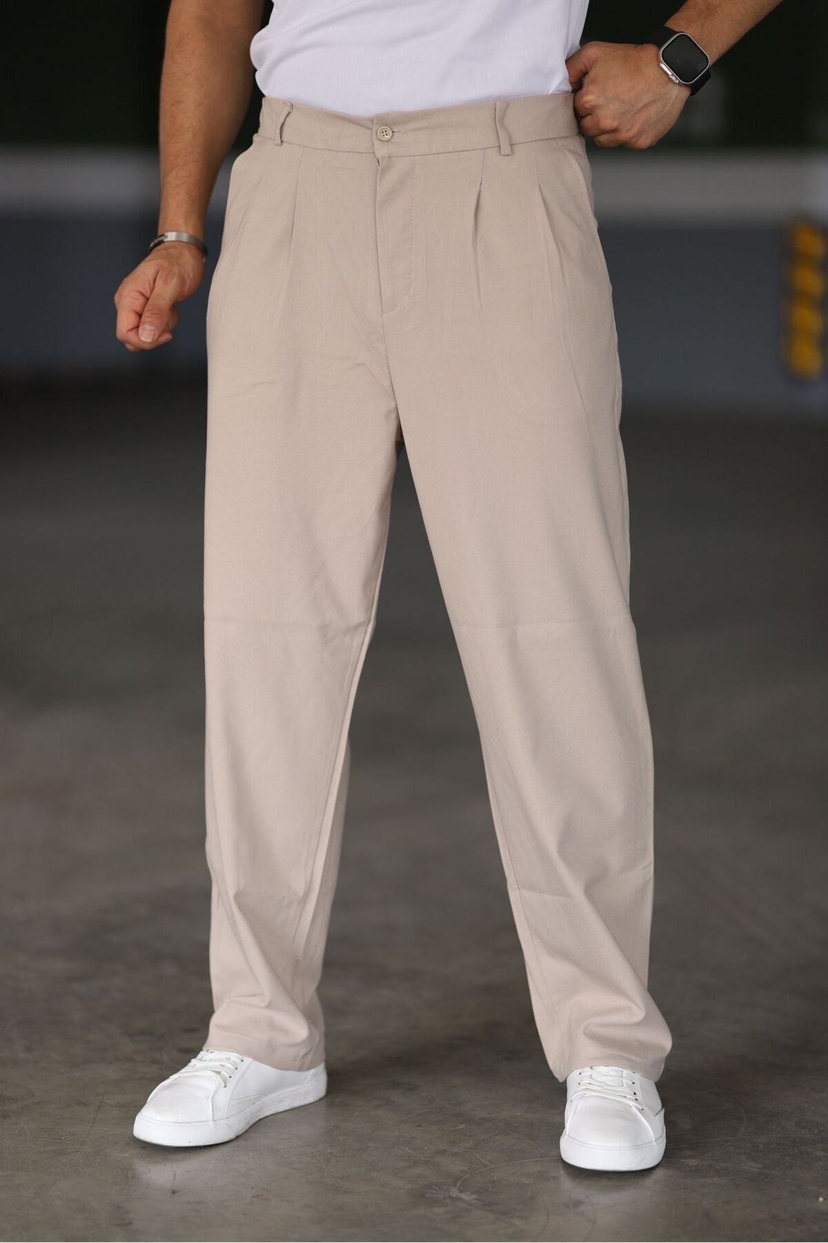Baggy Çift Pileli Siyah Renk Beli Lastikli Kaliteli Rahat Kesim Klasik Bol Paça Baggy Pantolon